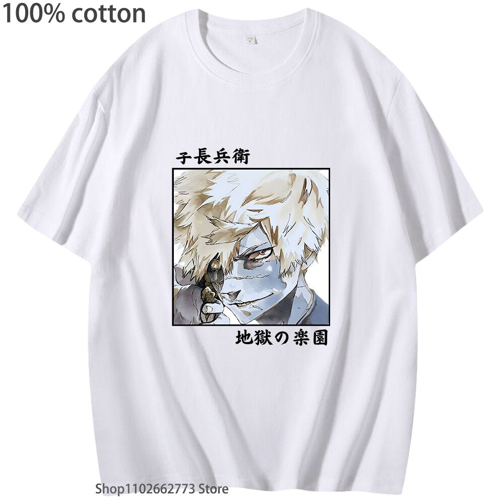 Looking for some stylish anime-themed clothing? Look no further than these Jigokuraku Anime Shirts! Featuring Aza Chōbei and other characters from Hell's Paradise, these shirts are perfect for any fan of the hit anime series. Made from high-quality 100% cotton, these shirts are perfect for staying cool and comfortable in the summer months. Whether you're looking for a casual streetwear look or a comfortable T-shirt for lounging around, these Jigokuraku Anime Shirts are the perfect addition to any wardrobe. Available in both men's and women's sizes, you can show off your love for the series no matter your gender. Don't miss out on this must-have summer clothing item!