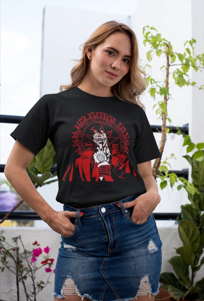 - Vampire-Inspired Design: Showcase your love for the iconic anime, Hellsing, with this captivating printed tee.