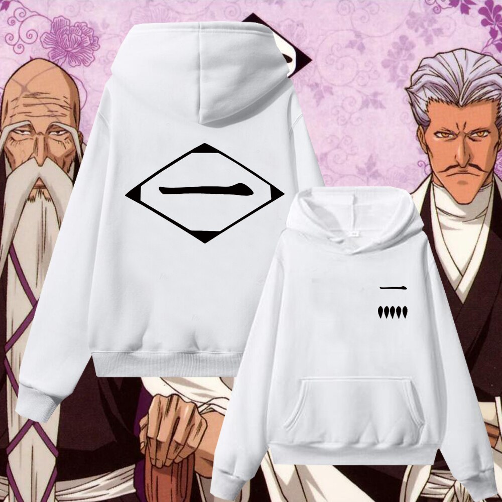 Honor the legendary captains of the Gotei 13 with this Bleach-inspired hoodie. Featuring the iconic division symbols, this hoodie is a must-have for every Bleach fan looking to represent their favorite squad with style.