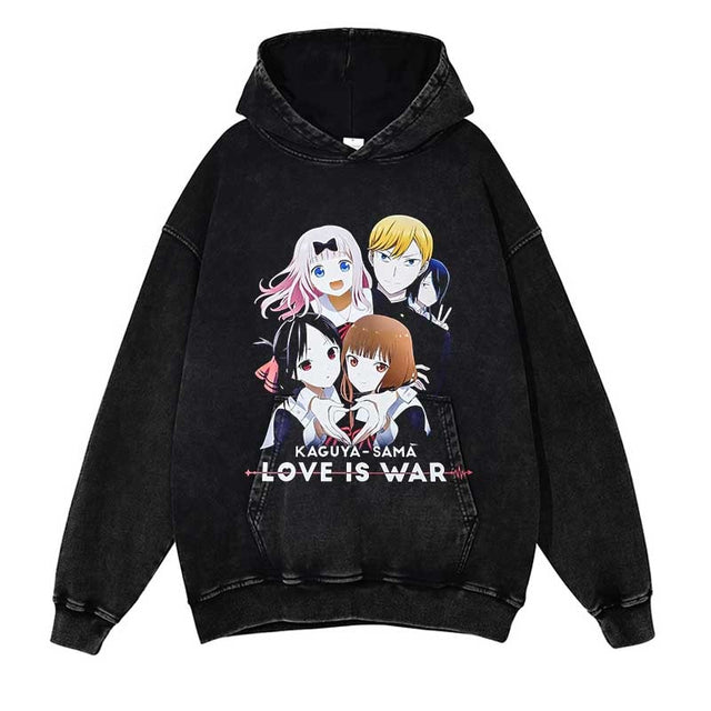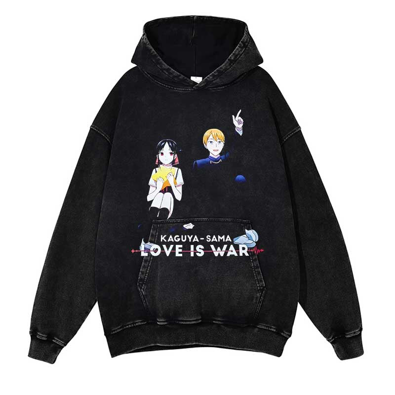 Embrace your love for "Love Is War" with the Love Is War 2 Styles Washed Black Streetwear Cotton Vintage Hoodie. Stay comfortable, stylish, and true to your anime fandom. Order now and elevate your wardrobe with this must-have piece!