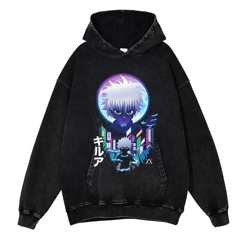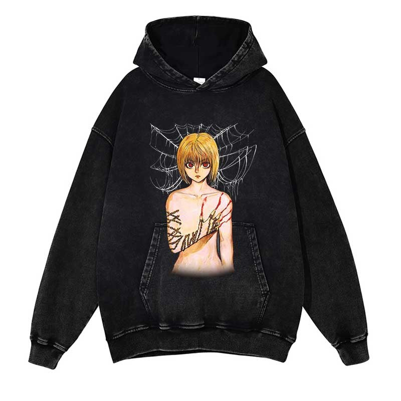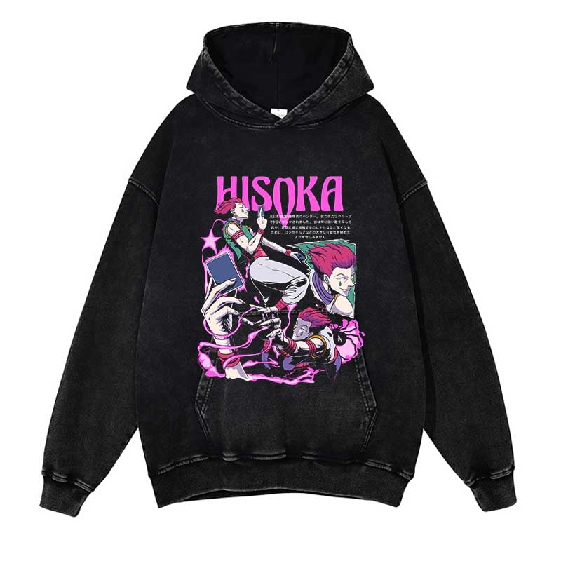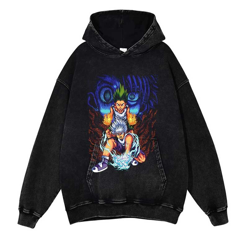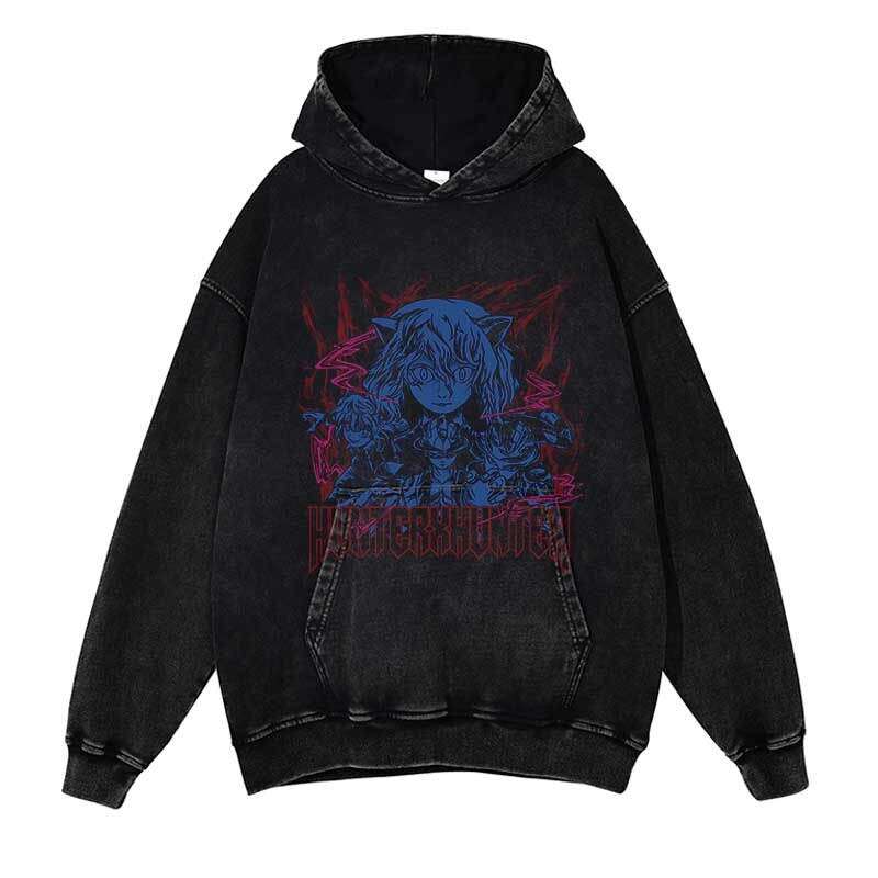 Embrace the world of Hunter X Hunter with the Washed Black Streetwear Cotton Vintage Hoodie. Elevate your style and showcase your anime fandom in a trendy and comfortable way. Order now and join the ranks of passionate Hunter X Hunter fans!