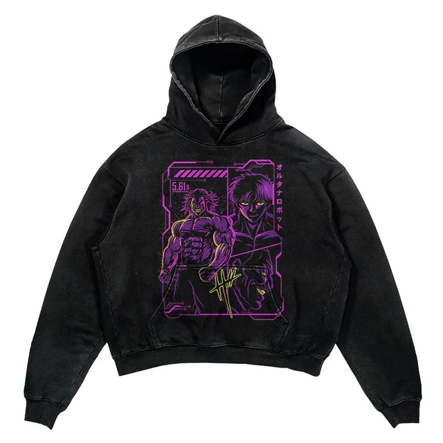 🥊👕"Fist of Strength" - Baki Retro Graphic Hoodie 🥊👕