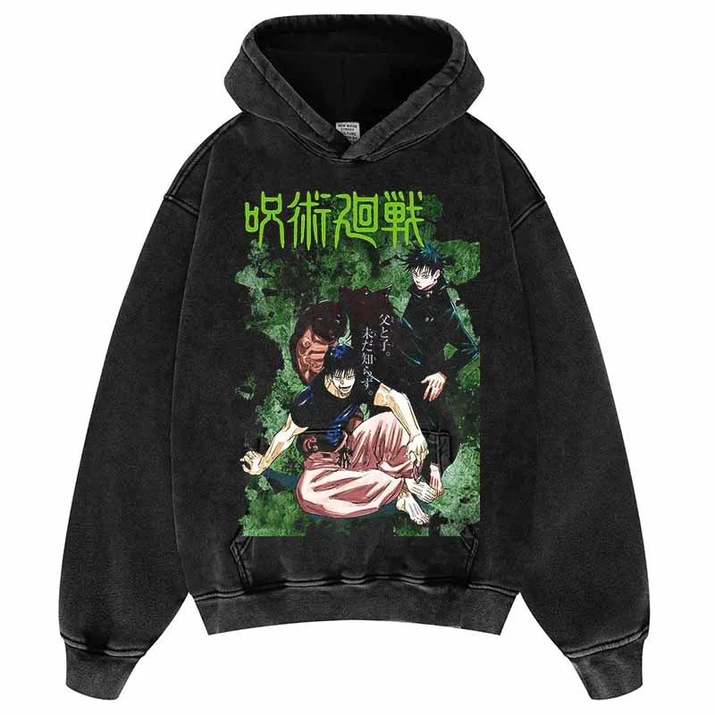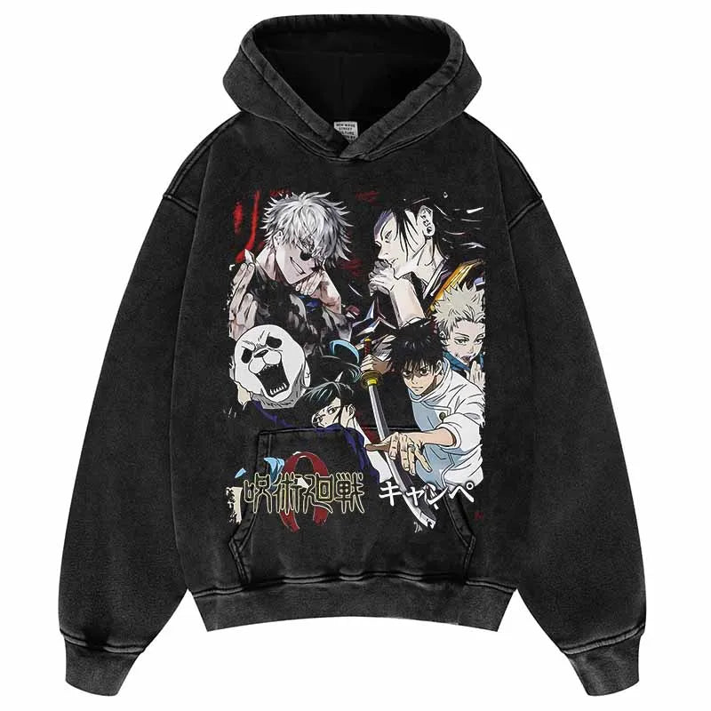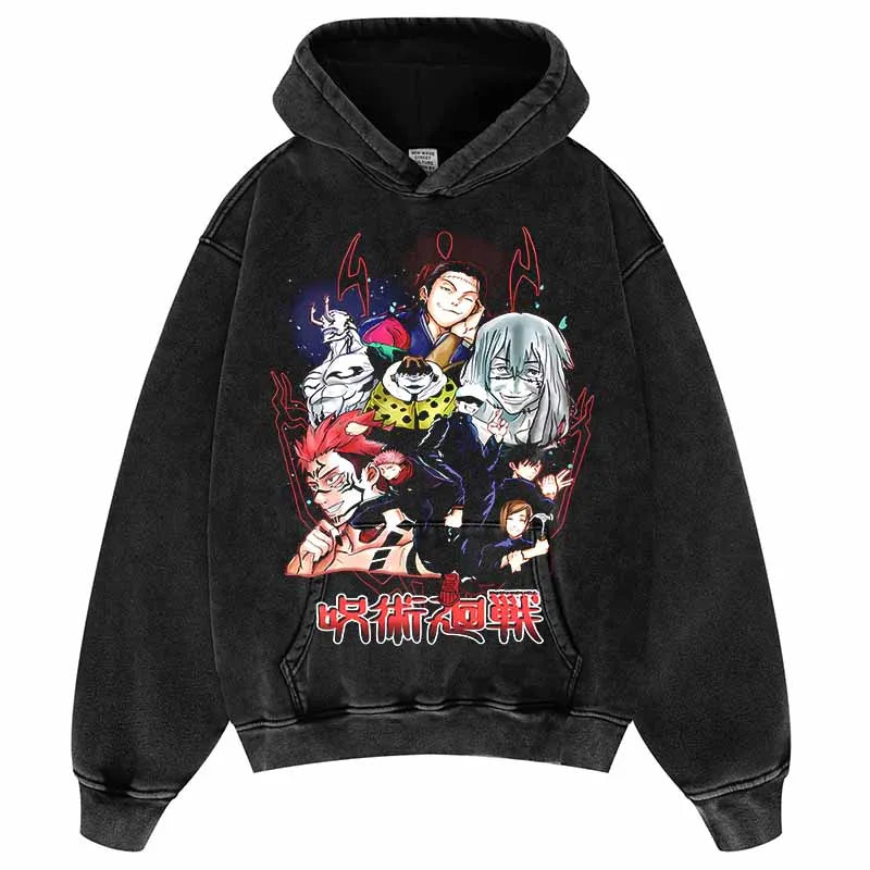 👹 Bold Jujutsu Kaisen Graphics: Displaying intense illustrations of the Jujutsu Kaisen cast, each hoodie captures the dynamic essence of the anime's most memorable moments.