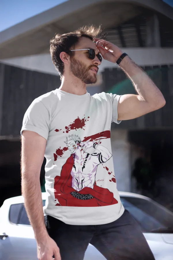 Channel the power of Ryomen Sukuna with this bold and intense design from Jujutsu Kaisen. Featuring the iconic Cursed King in his fearsome form, this shirt captures Sukuna’s raw strength and chaotic energy, with splashes of red accentuating the fierce artwork. Perfect for Jujutsu Kaisen fans who appreciate a striking and edgy look, this tee combines style and comfort, making it a must-have for casual wear or anime conventions.