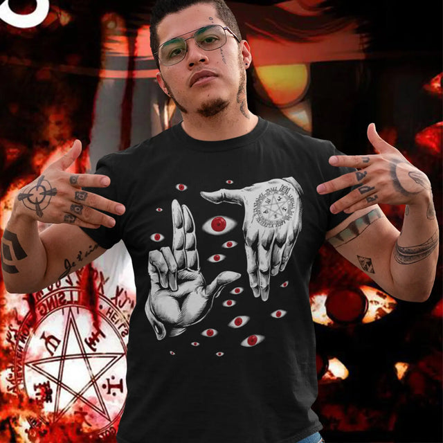 Step into the shadows with the Bloodshot Vision Tee, featuring a captivating design that embodies the mystique of the Ultimate Vampire realm. This shirt showcases intricate hand symbols and striking blood-red eyes, perfect for fans who love a mix of dark aesthetics and supernatural allure.