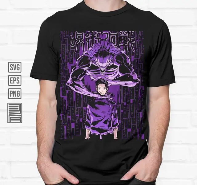 Step into the shadows with this intense design featuring a character and their fearsome, looming presence. This tee captures the raw, chilling energy that fans of supernatural anime crave. Perfect for adding a bold, dark twist to your collection.