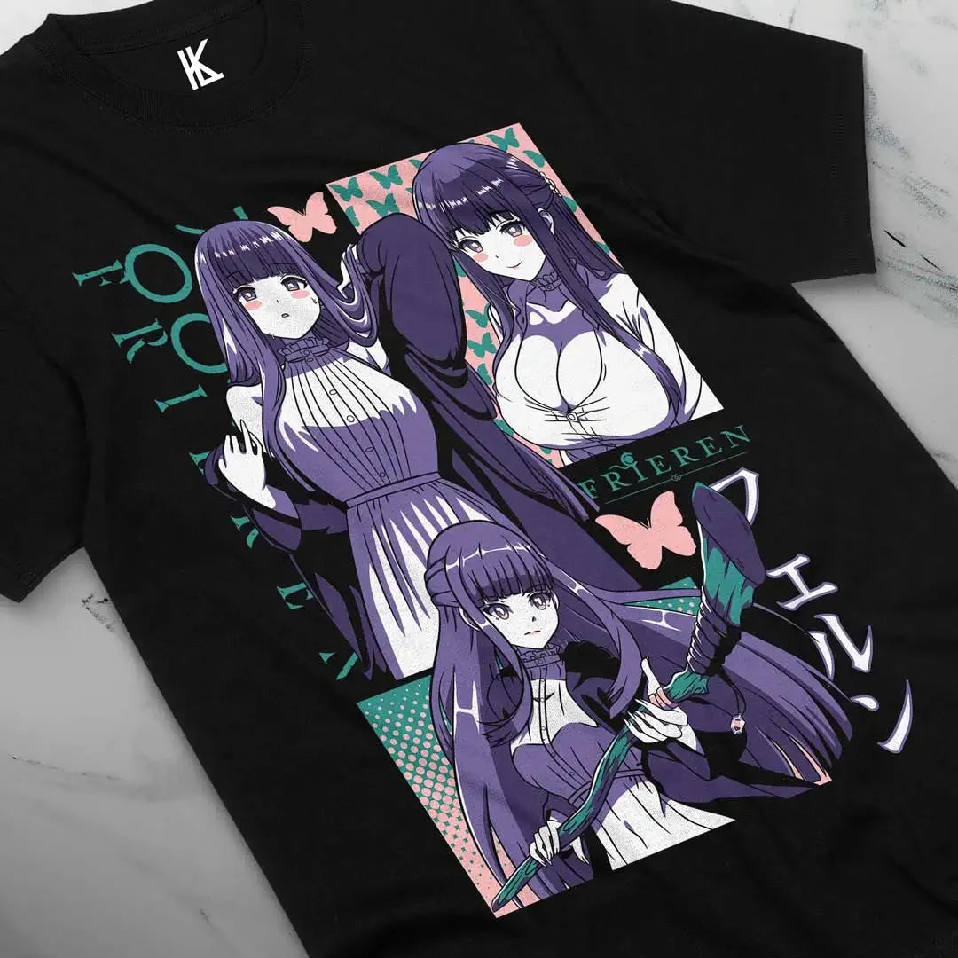 Dive into the magical world of Frieren with this stunning Fern tee. Featuring a detailed and captivating design of Fern in her mystical attire, this shirt is a must-have for any fan who appreciates the enchanting and mysterious aura she brings to the series. Perfect for casual outings or anime conventions, it's sure to make you stand out.