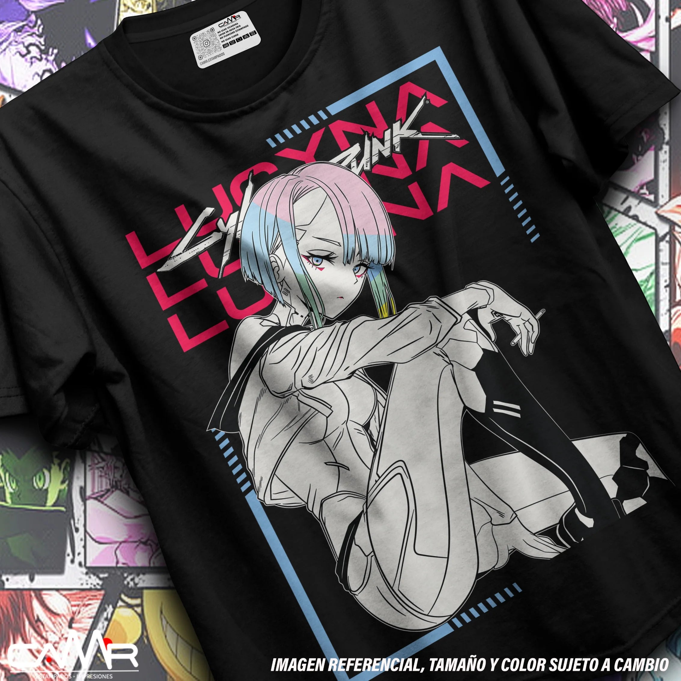 Step into the neon-lit world of Cyberpunk: Edgerunners with this stunning Lucy t-shirt. Featuring the sleek and enigmatic Lucy, this shirt brings futuristic flair to your wardrobe with vibrant colors and an eye-catching design. Perfect for fans of the Cyberpunk series, this tee captures the allure and mystique of one of the show’s most iconic characters. Comfortable and stylish, it's ideal for conventions, casual days out, or a laid-back anime look.