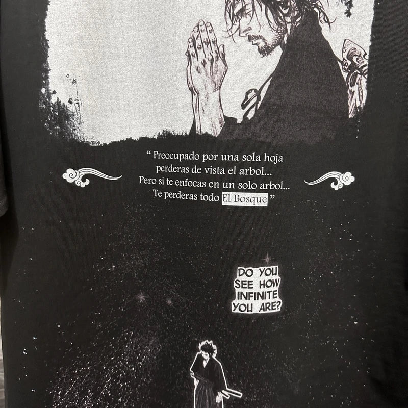 Embrace the spirit of the legendary samurai with this Miyamoto Musashi acid-washed shirt, designed for the true fans of Japanese culture and history. This shirt captures the essence of Musashi, the undefeated swordsman, depicted in a solemn stance with his katana, surrounded by an aura of serenity and power. The acid-wash treatment gives the fabric a unique, vintage look that complements the detailed black-and-white artwork, making this piece not just a shirt, but a statement. Perfect for casual wear or as a collector's item, this shirt is made from high-quality, durable material that ensures comfort and style for any anime or history enthusiast.