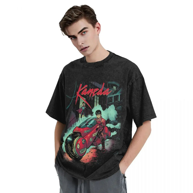 Relive the cyberpunk thrills of Neo Tokyo with this Kaneda-inspired tee. Featuring the iconic red bike and atmospheric cityscape, this shirt is perfect for fans of high-octane action and dystopian futures.