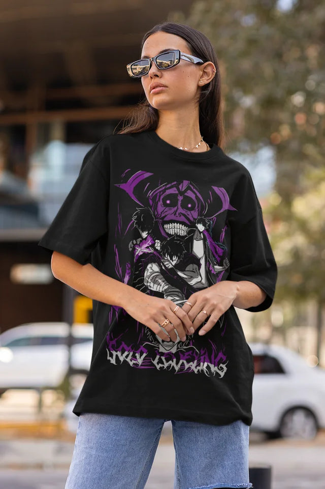 - Bold design featuring Sung Jinwoo and his shadow army