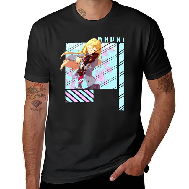 - Elegant Your Lie in April Design: Celebrate the beauty and emotion of Your Lie in April with this stunning tee featuring the talented violinist Kaori Miyazono, capturing the spirit of the beloved anime.
