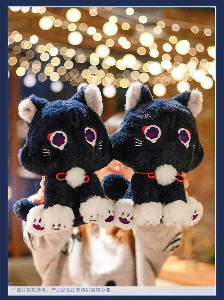 The black cat design, inspired by Scaramouche's transformation, adds an extra touch of charm and uniqueness to this plush toy. Its cute and expressive features are sure to melt hearts and bring smiles to the faces of both children and collectors.