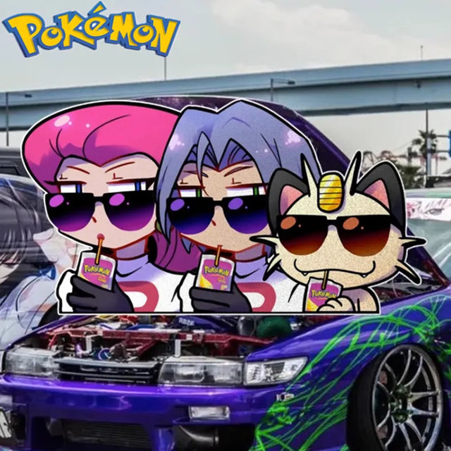 Show off your love for Pokemon with our Pokemon Team Rocket Reflective Car Stickers. Featuring the iconic trio – Meowth, Jessie, and James – these stickers are a perfect addition to any anime enthusiast's collection. Crafted with high-quality, reflective materials, these stickers not only highlight your fandom but also add an extra layer of safety by improving visibility on the road. The vibrant colors and detailed design capture the mischievous charm of Team Rocket, making them a standout accessory for your car's glass surfaces.
