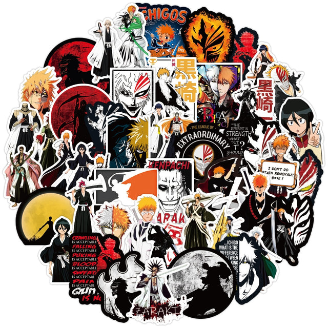 Unleash your inner anime enthusiast and upgrade your belongings with our sensational BLEACH anime stickers! These stickers are the ultimate solution for adding a touch of anime magic to your phone, car, laptop, luggage, skateboard, and notebook.