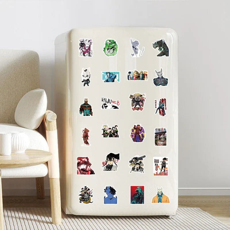 Unleash your inner Kaiju with this epic collection of 53 waterproof stickers featuring characters from the thrilling Kaiju No. 8 anime. Whether you're a fan of Kafka, Hoshina, or the monstrous creatures they battle, these high-quality stickers are perfect for adding a touch of anime flair to your belongings. Designed for durability, these stickers are ideal for personalizing your laptop, skateboard, motorcycle, or luggage. With vibrant colors and striking designs, they bring the world of Kaiju No. 8 to life wherever you go.
