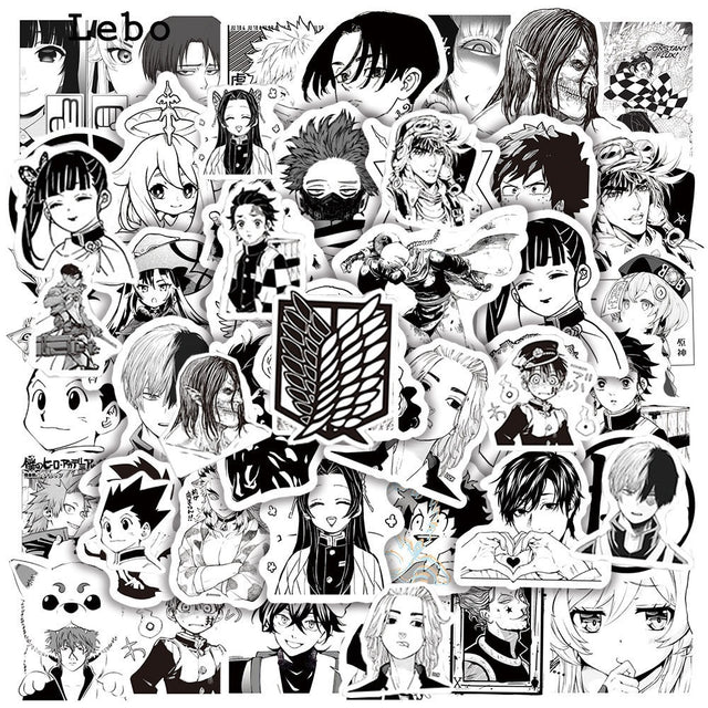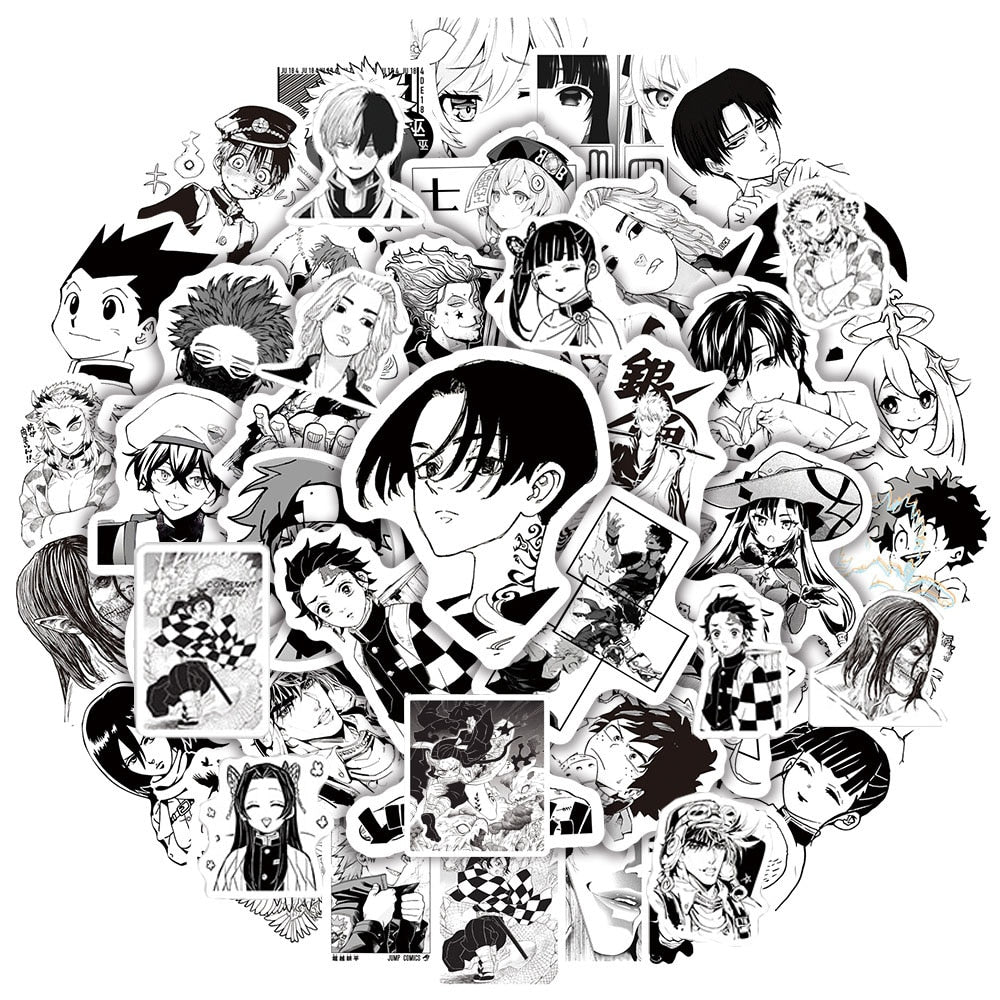 Level up your collection with this Trio Legends Anime Sticker Pack featuring epic black-and-white manga panels from Demon Slayer, Jujutsu Kaisen, and Attack on Titan! These high-quality stickers are perfect for decorating your favorite gear with serious anime style.