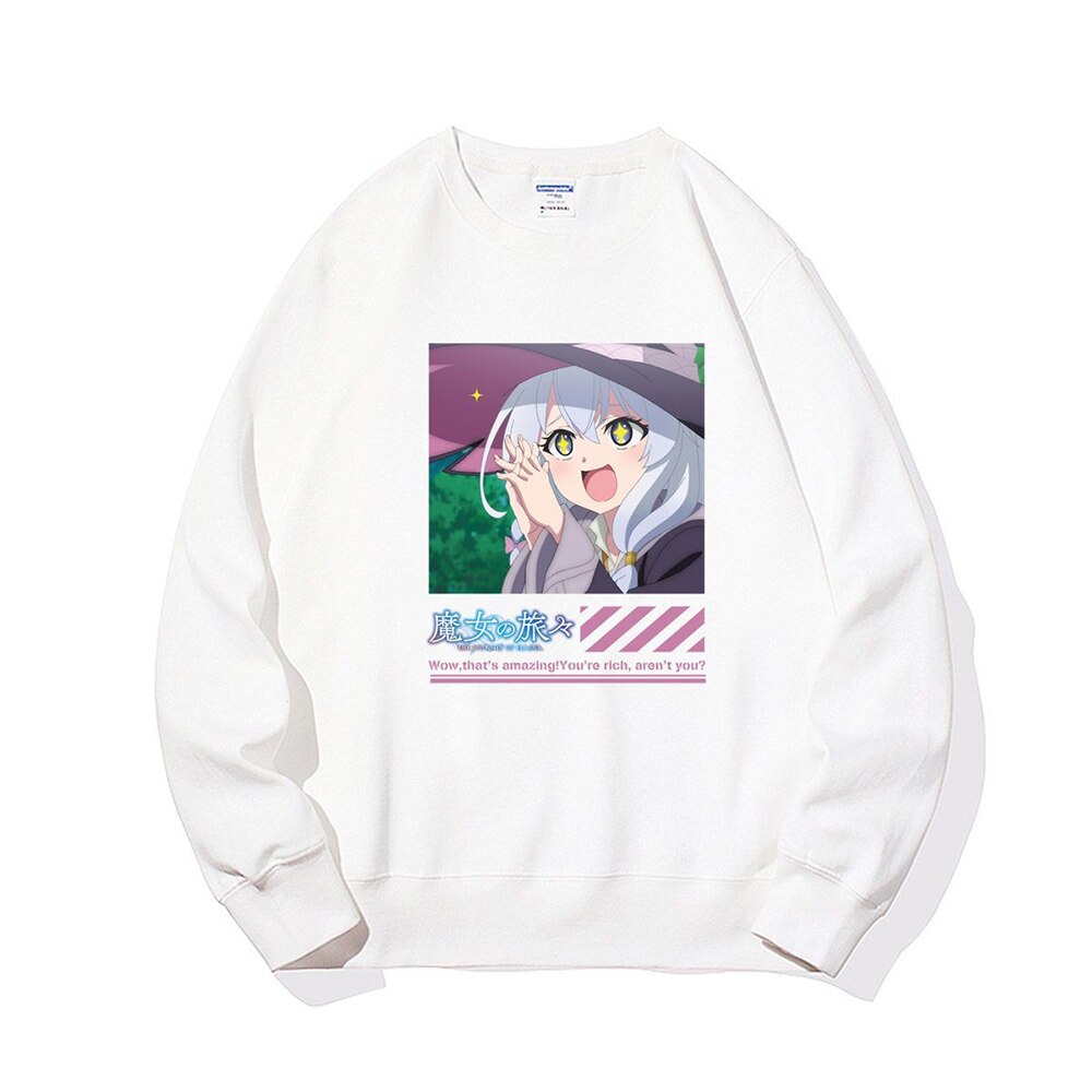 Featuring captivating designs and exquisite artwork from "The Journey of Elaina," these sweatshirts allow you to showcase your love for the anime series in style. The vibrant colors and stunning graphics will surely catch the eye of fellow anime enthusiasts.