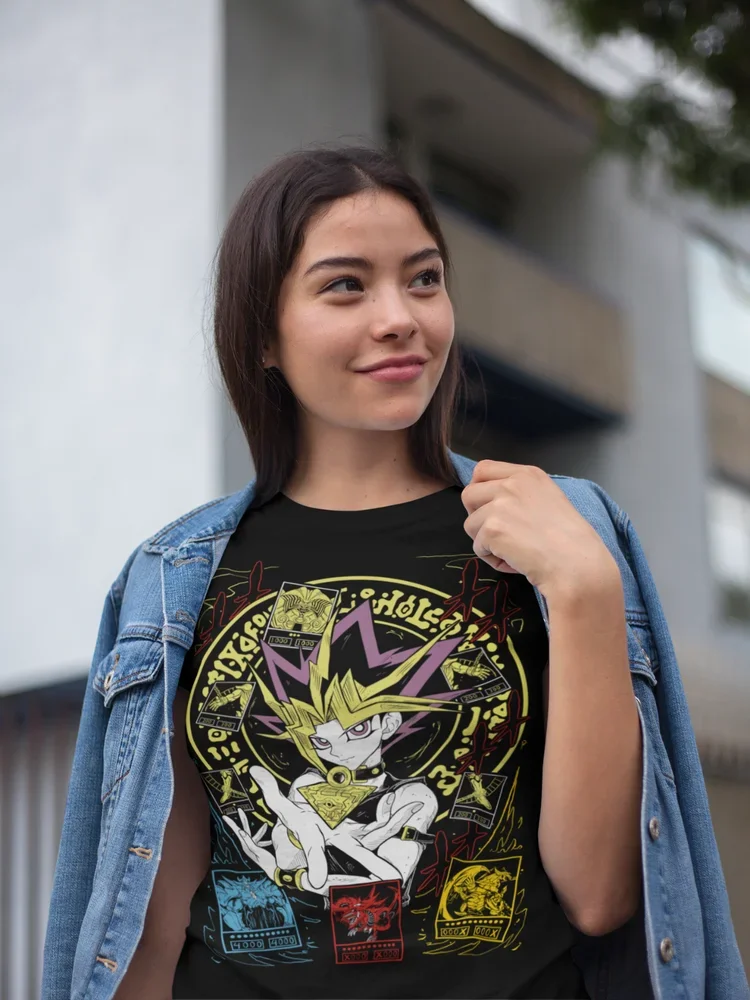 - Iconic Yugi Design: Show off your love for Yu-Gi-Oh with this striking tee featuring the legendary Yugi and his signature cards.