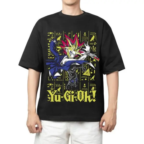 Step into the world of Yu-Gi-Oh! with this epic Yugi Duel Master Tee, featuring the iconic Yugi Muto ready for battle. With a vibrant design that showcases Yugi's fierce pose against a backdrop of ancient hieroglyphics, this shirt is perfect for fans of the legendary card game and anime series. Whether you're attending a duel or just adding to your anime wardrobe, this tee offers both style and comfort for everyday wear.