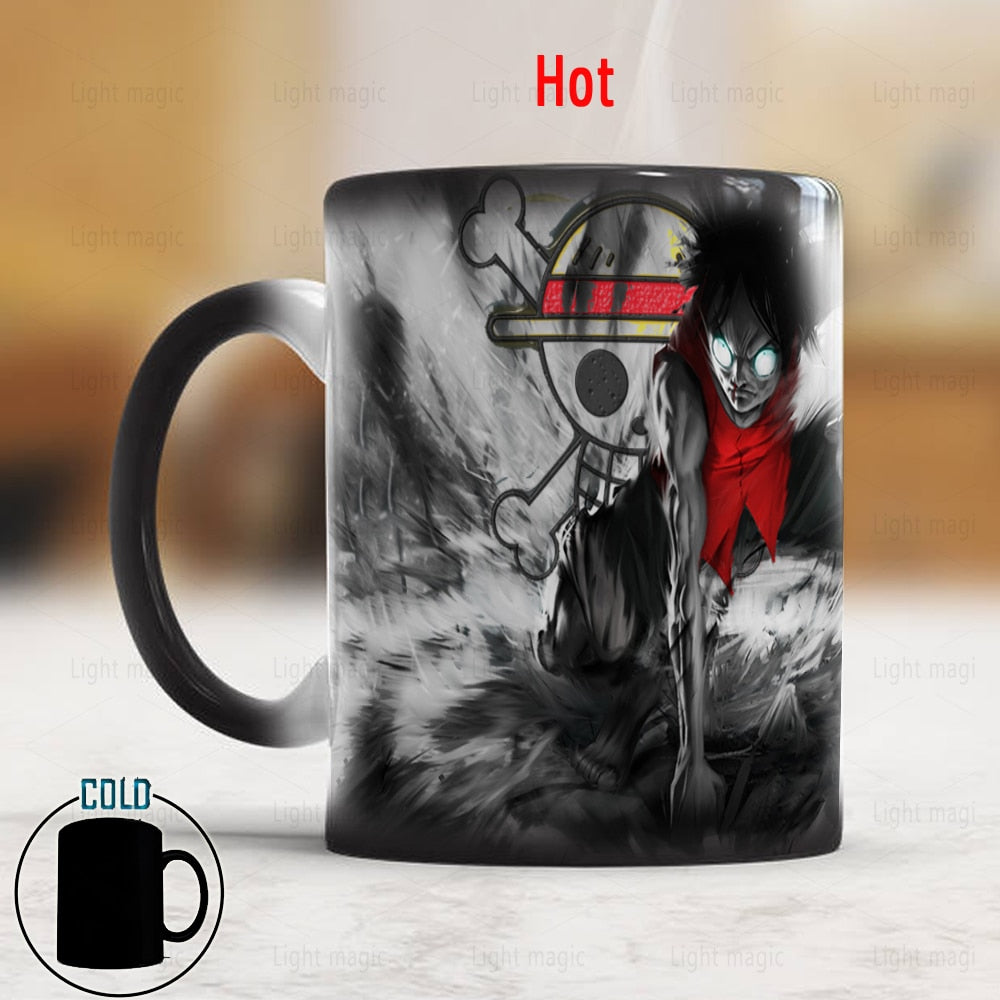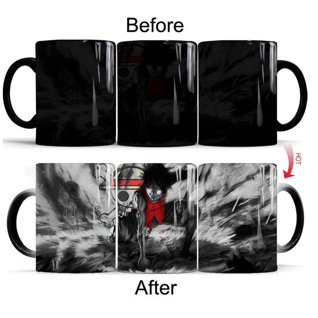 Introducing our One Piece Black Luffy Mug - a creative ceramic magic color changing cup that will impress any anime fan. With its heat sensitive design, watch as the mug transforms from black to reveal the beloved character Luffy. Perfect for a cup of coffee, tea, or any hot beverage, this mug holds 11oz and is great for use at home, in the office, or on the go. It makes for an ideal gift for a One Piece enthusiast on their birthday or any special occasion. Get ready to add some fun to your morning routine with our One Piece Black Luffy Mug!