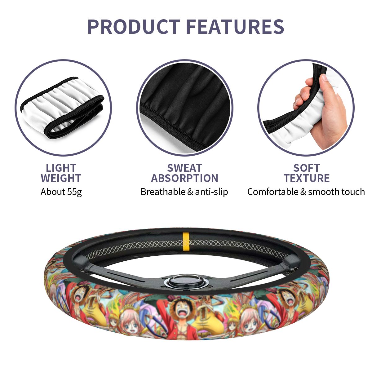 Introducing the ultimate car accessory for One Piece fans - the 37-38 Car Steering Wheel Cover! Featuring a classic Japanese anime design, this soft and comfortable cover is perfect for adding a touch of manga-inspired style to your car's interior. Made with high-quality materials, it's durable, long-lasting, and easy to install. Not only does it look great, but it also provides a better grip on your steering wheel, improving your driving experience. Whether you're a die-hard fan of Monkey D. Luffy and the Straw Hat crew, or just looking for a unique way to show off your love for anime, this steering wheel cover is a must-have addition to your car accessories collection.