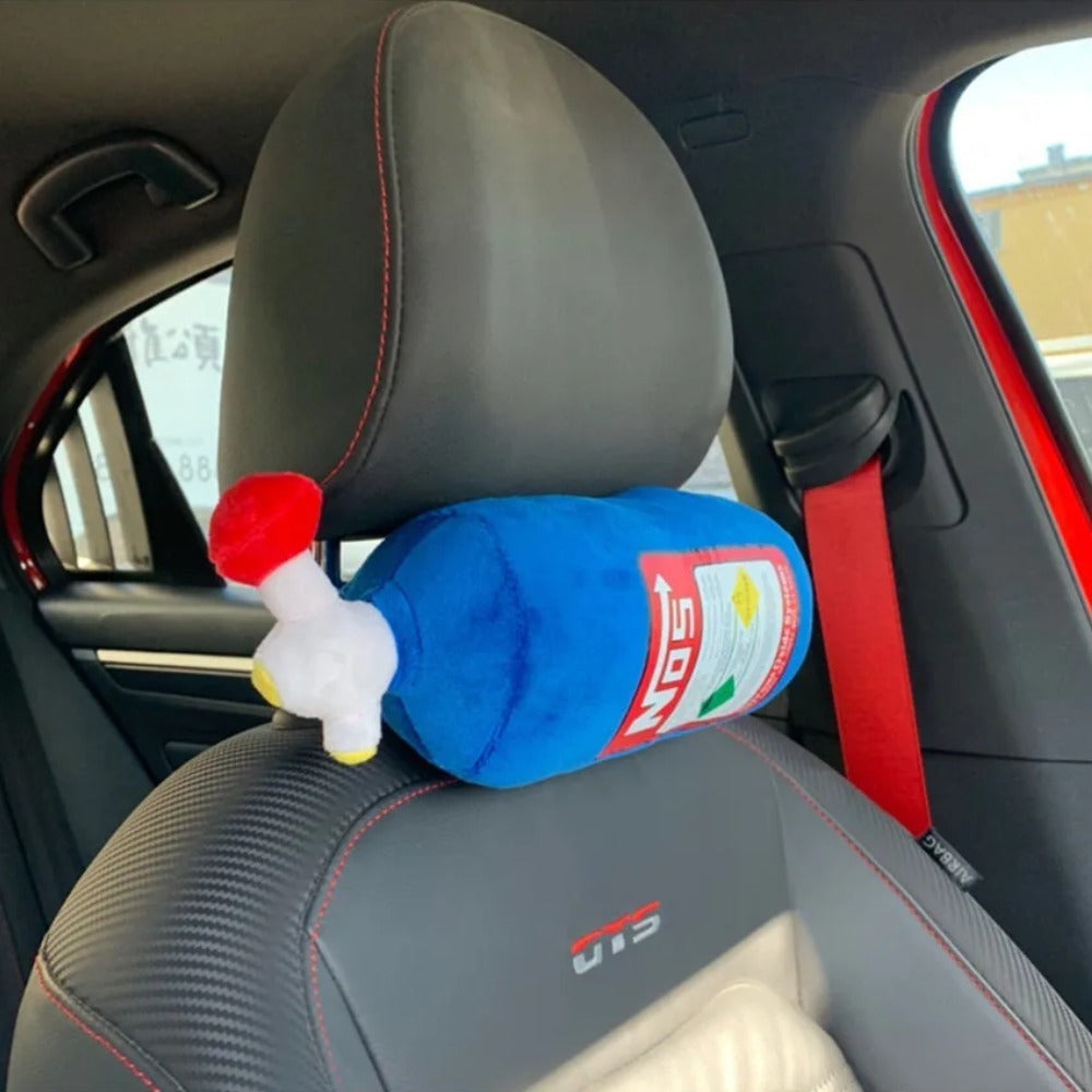 Give your car interior a boost of speed and style with this NOS Bottle-themed headrest! Inspired by racing culture, this plush nitrous oxide (NOS) bottle design brings both comfort and a high-performance look to your ride. Whether you're a car enthusiast or just love cool accessories, this headrest is the perfect addition for a smooth and stylish drive!