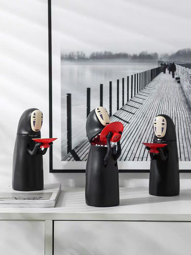 Introducing the Spirited Away No Face Man Model Figure Doll Piggy Bank - the perfect addition to any anime fan's collection! This faceless man piggy bank is not only a great way to save money, but also a fun and unique decoration for your room.