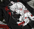 Embrace the regal and powerful presence of Sesshomaru with this captivating tee. Showcasing the iconic demon lord from Inuyasha in striking detail, this shirt captures Sesshomaru’s elegance and fierce demeanor. The monochrome design with bold red accents brings out his formidable nature, making it perfect for fans who appreciate his cold yet compelling character.