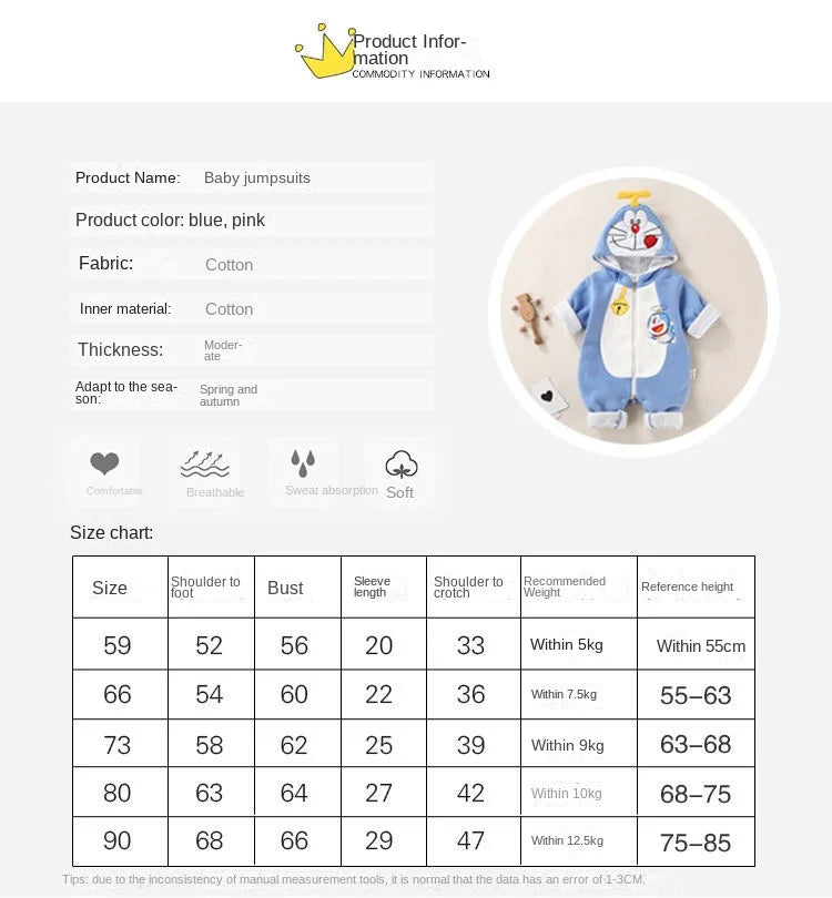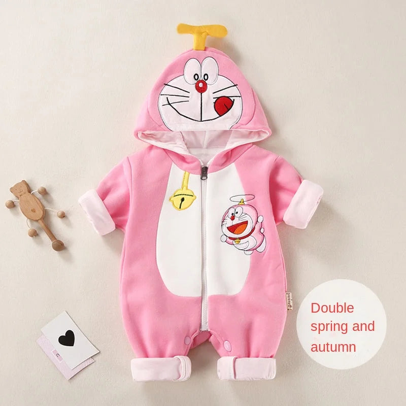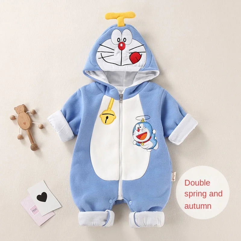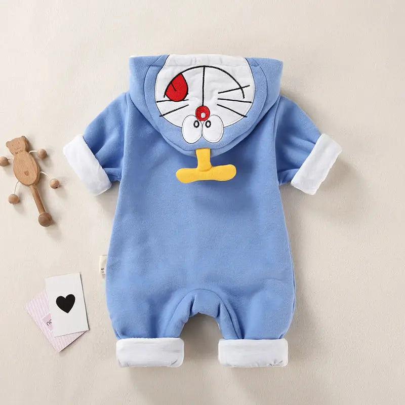 🧥 Hooded for Extra Warmth and Cuteness: Each onesie comes with a hood, adding an extra layer of warmth for your baby. The hood also enhances the Doraemon theme, making your baby look even more adorable and snug.