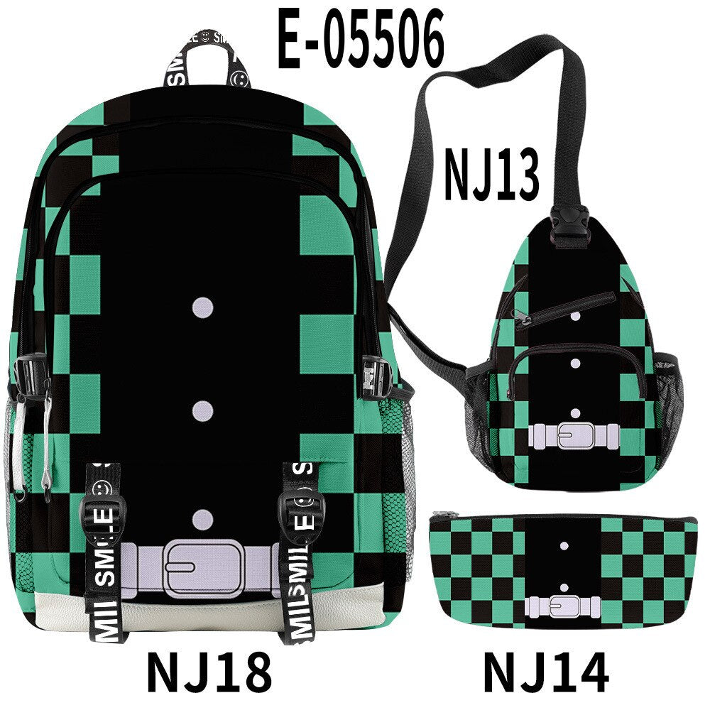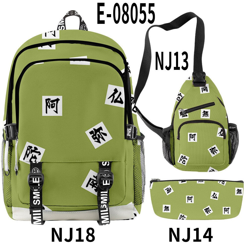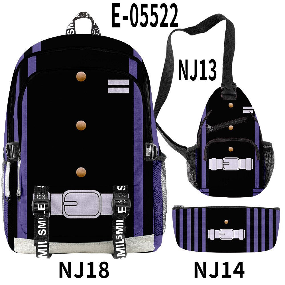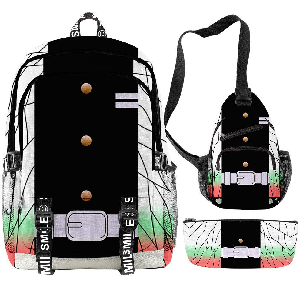 🌟 Backpack, Chest Bag, Pencil Case Trio: Crafted to cater to every aspect of your life, this 3-piece set features a multifunctional backpack, a versatile chest bag, and a stylish pencil case. Each piece bears intricate 3D prints inspired by the characters and essence of Demon Slayer, ensuring you carry the spirit of the anime with every step you take.