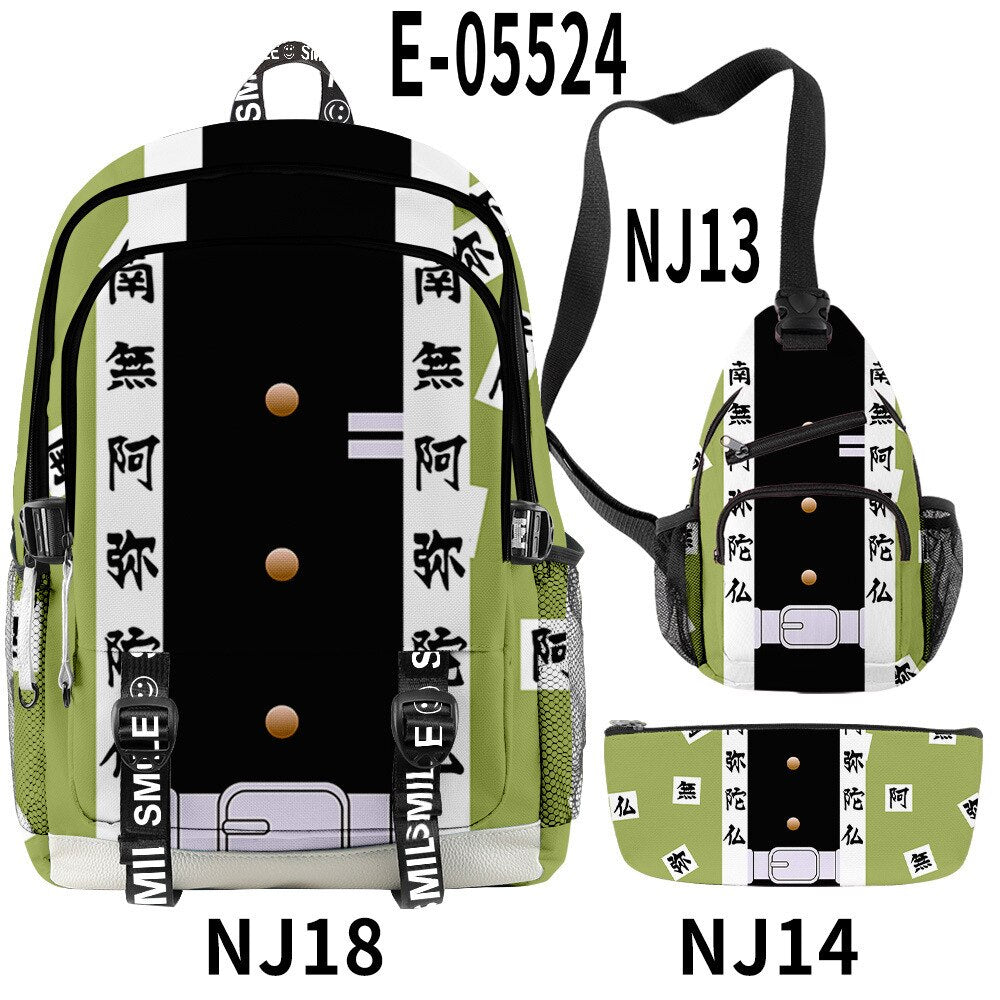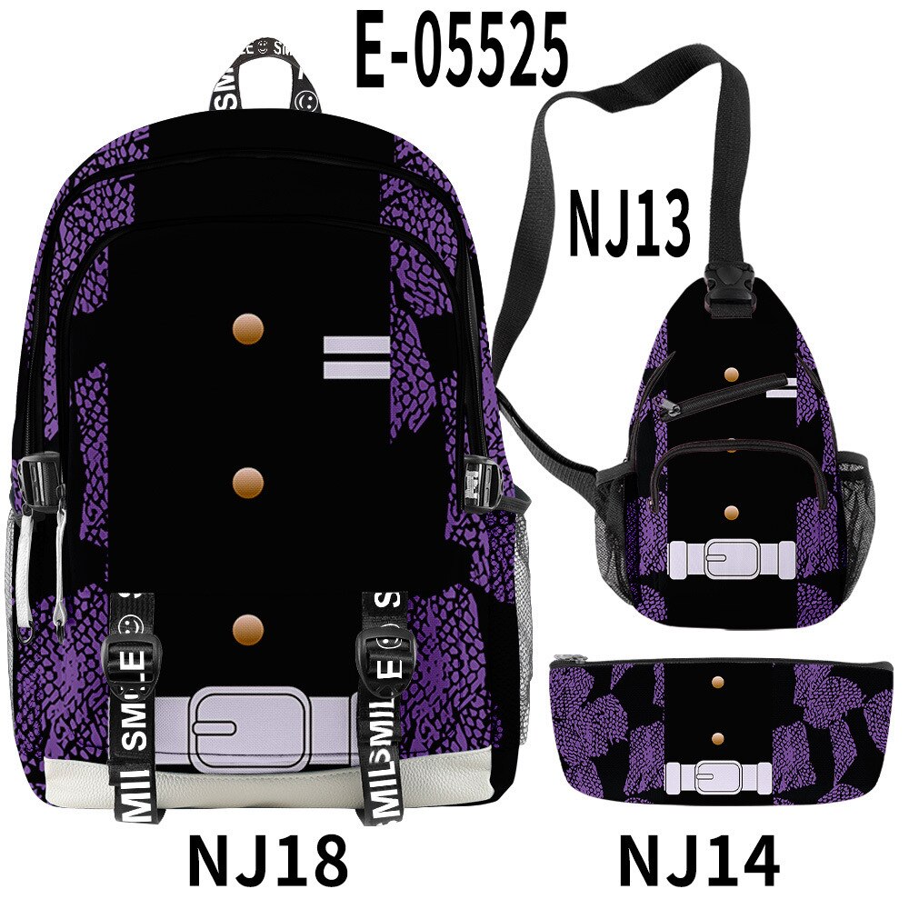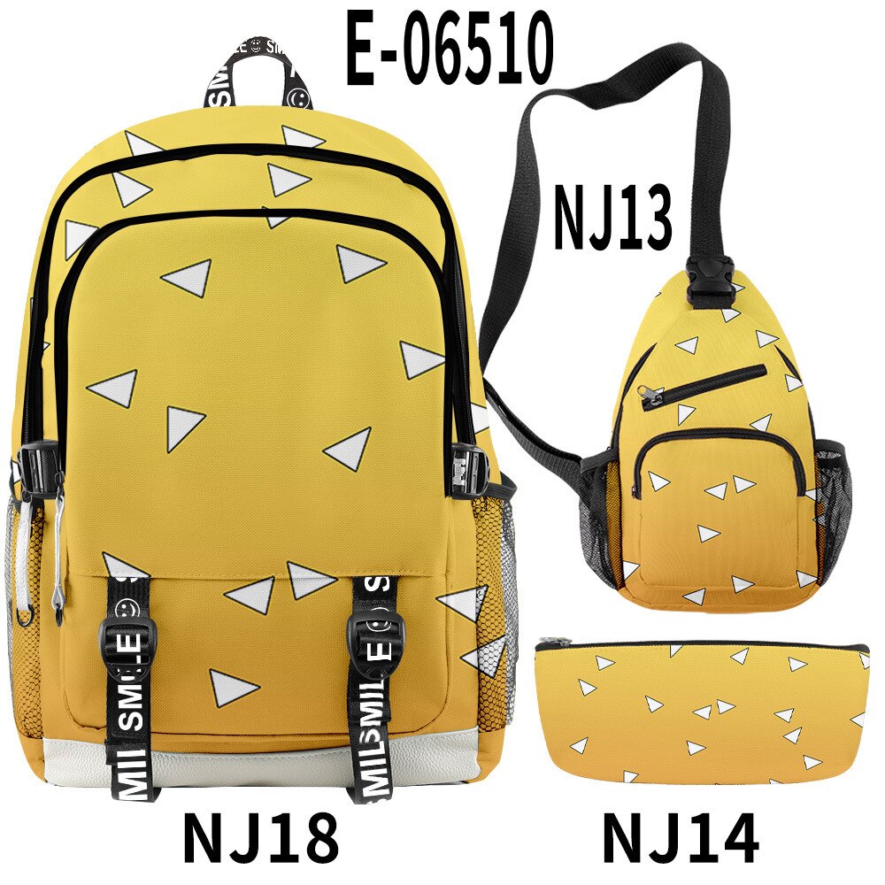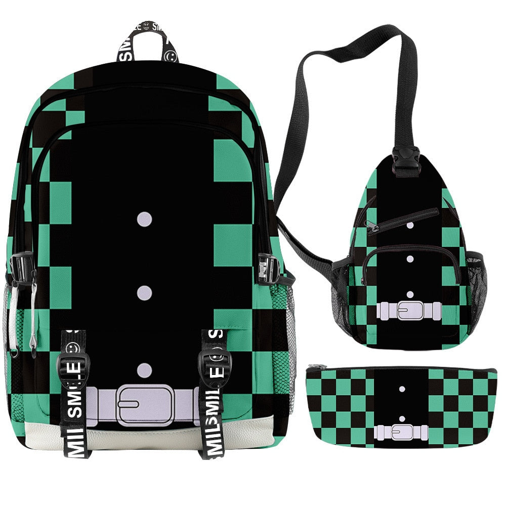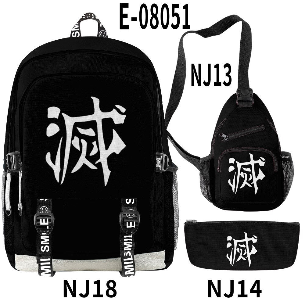 🌟 Backpack, Chest Bag, Pencil Case Trio: Crafted to cater to every aspect of your life, this 3-piece set features a multifunctional backpack, a versatile chest bag, and a stylish pencil case. Each piece bears intricate 3D prints inspired by the characters and essence of Demon Slayer, ensuring you carry the spirit of the anime with every step you take.
