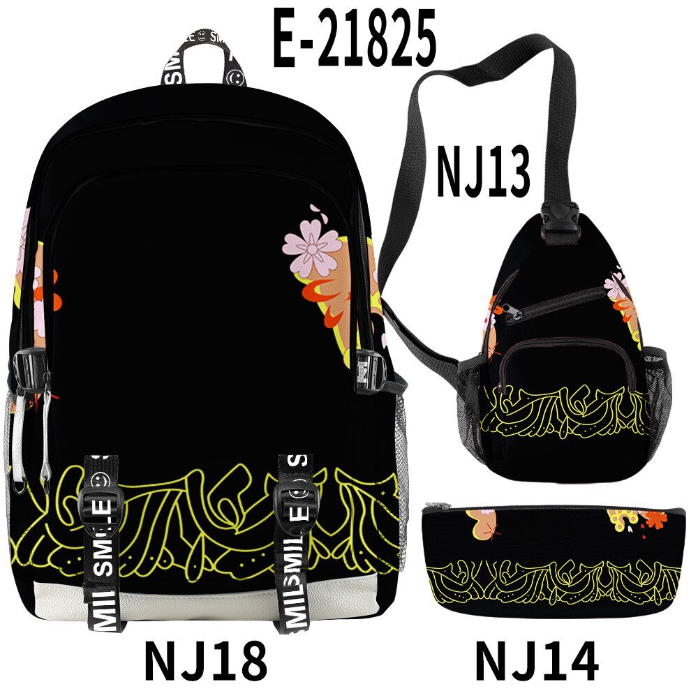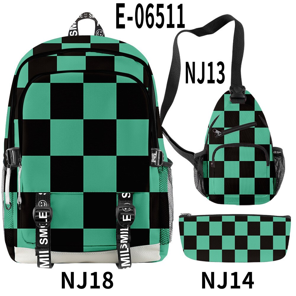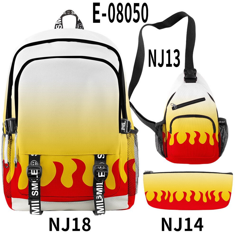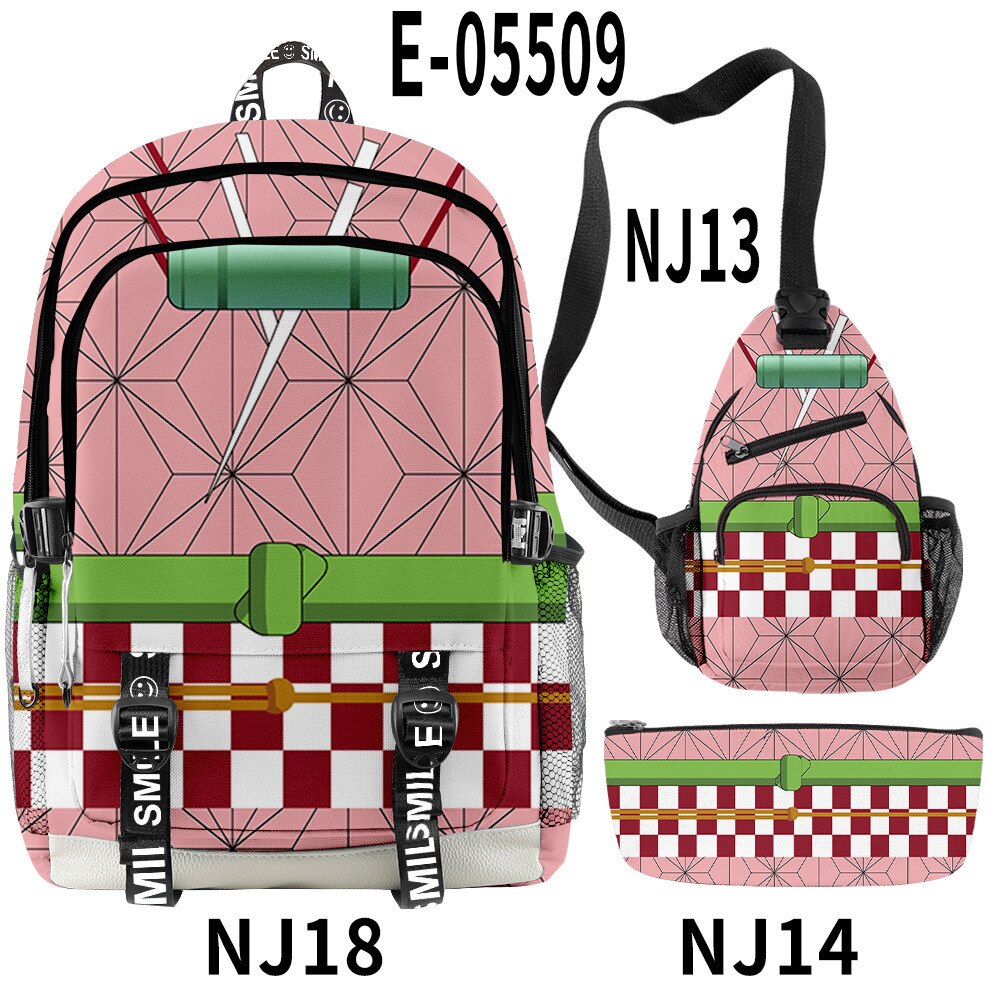 🌟 Backpack, Chest Bag, Pencil Case Trio: Crafted to cater to every aspect of your life, this 3-piece set features a multifunctional backpack, a versatile chest bag, and a stylish pencil case. Each piece bears intricate 3D prints inspired by the characters and essence of Demon Slayer, ensuring you carry the spirit of the anime with every step you take.