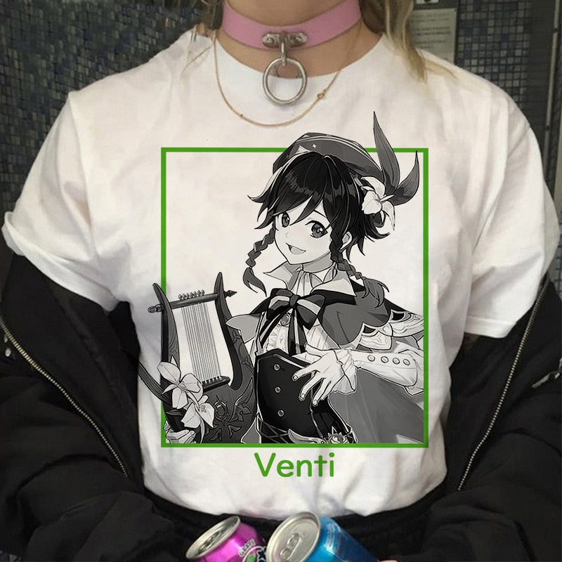 🌟 Join the Adventure: Become a part of the Genshin Impact world with the Venti Black and White Gothic Tee. It's not just clothing; it's a piece of Teyvat itself.
