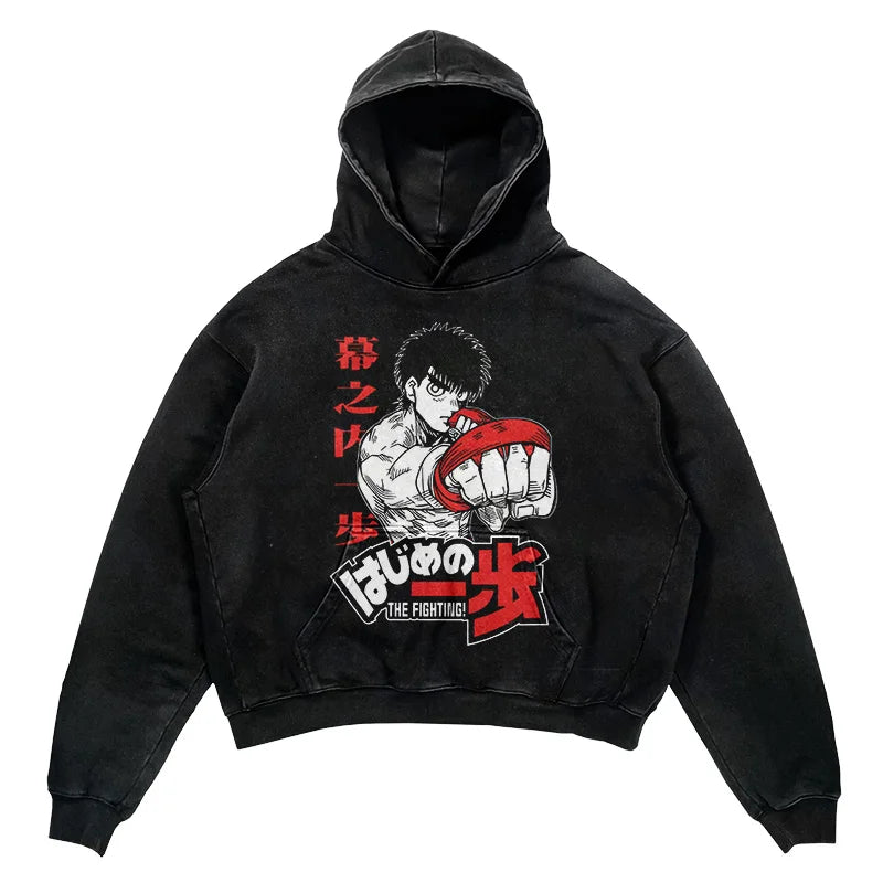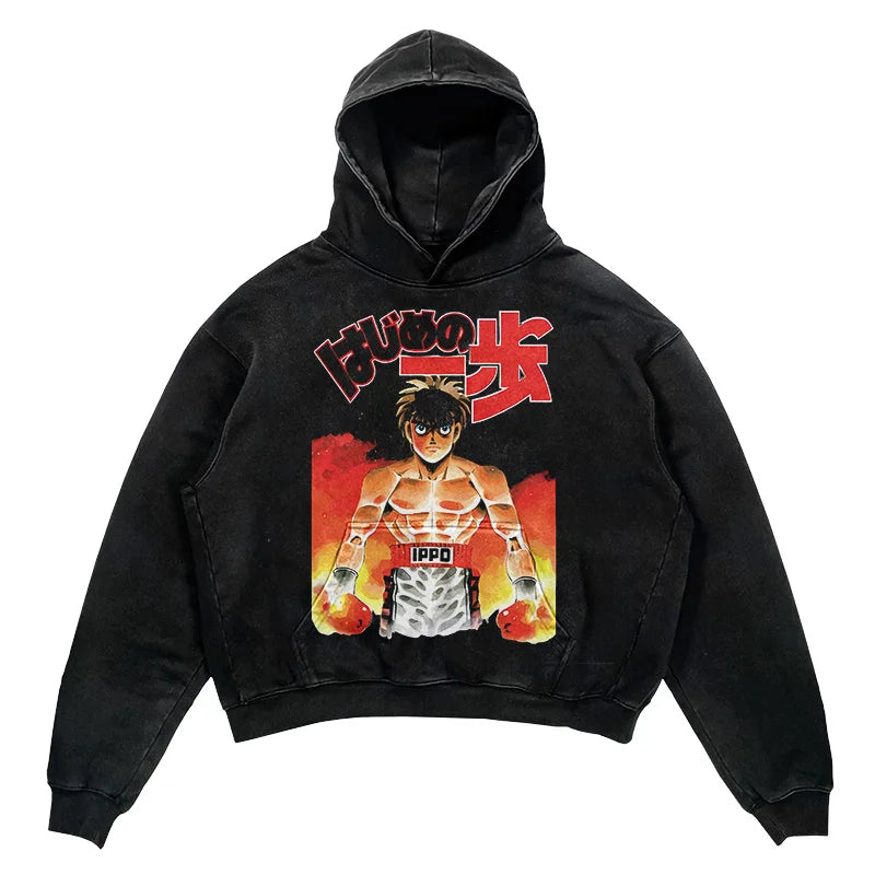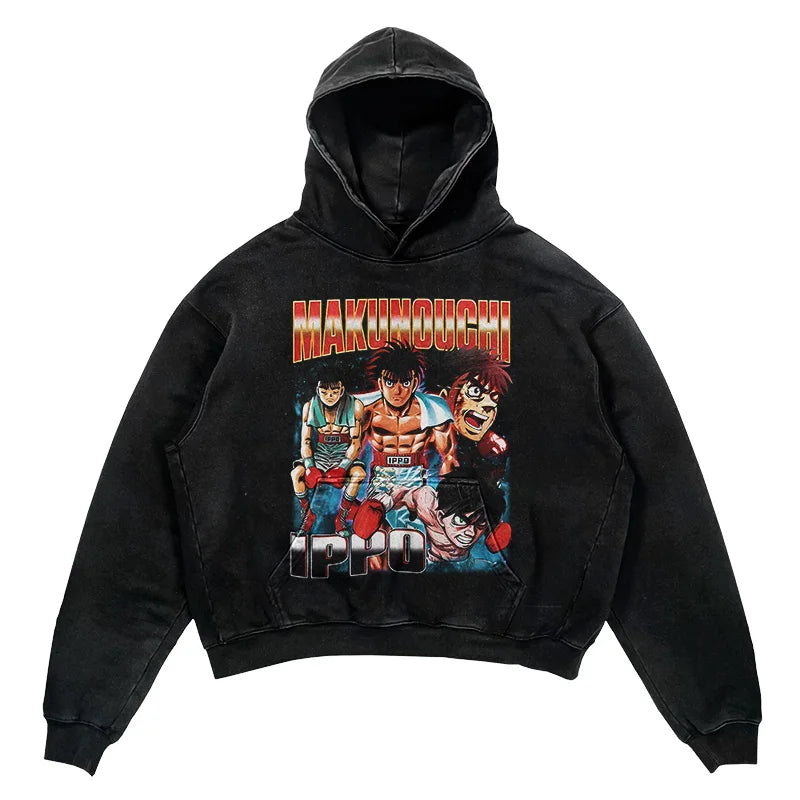 Embrace the heart of a champion with our Hajime no Ippo Champion Spirit Vintage Hoodie, a tribute to the resilience and determination showcased in the acclaimed boxing anime, Hajime no Ippo. Designed for fans who resonate with the underdog story of Makunouchi Ippo's rise to greatness, this hoodie merges the worlds of anime and streetwear.