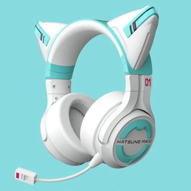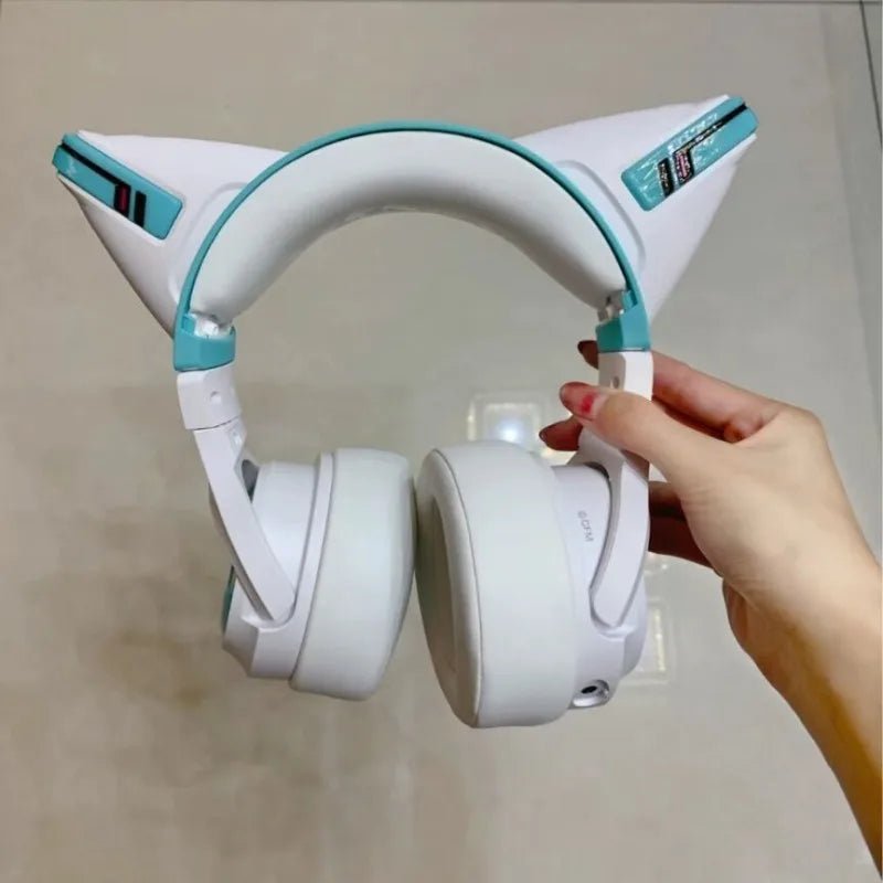 😺 Cute and Iconic Design: Inspired by the beloved Vocaloid, these headphones feature adorable cat ears integrated into the design, echoing Hatsune Miku's playful and creative spirit. They're not just a pair of headphones; they're a fashion statement and a cosplay accessory rolled into one.