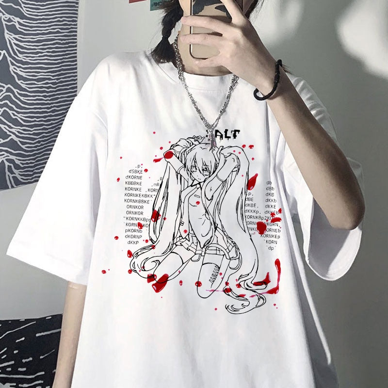 Unleash your inner Vocaloid fan with this Hatsune Miku Gothic Oversized Tee! Blending anime aesthetics with dark gothic fashion, this oversized shirt is perfect for making a bold statement.