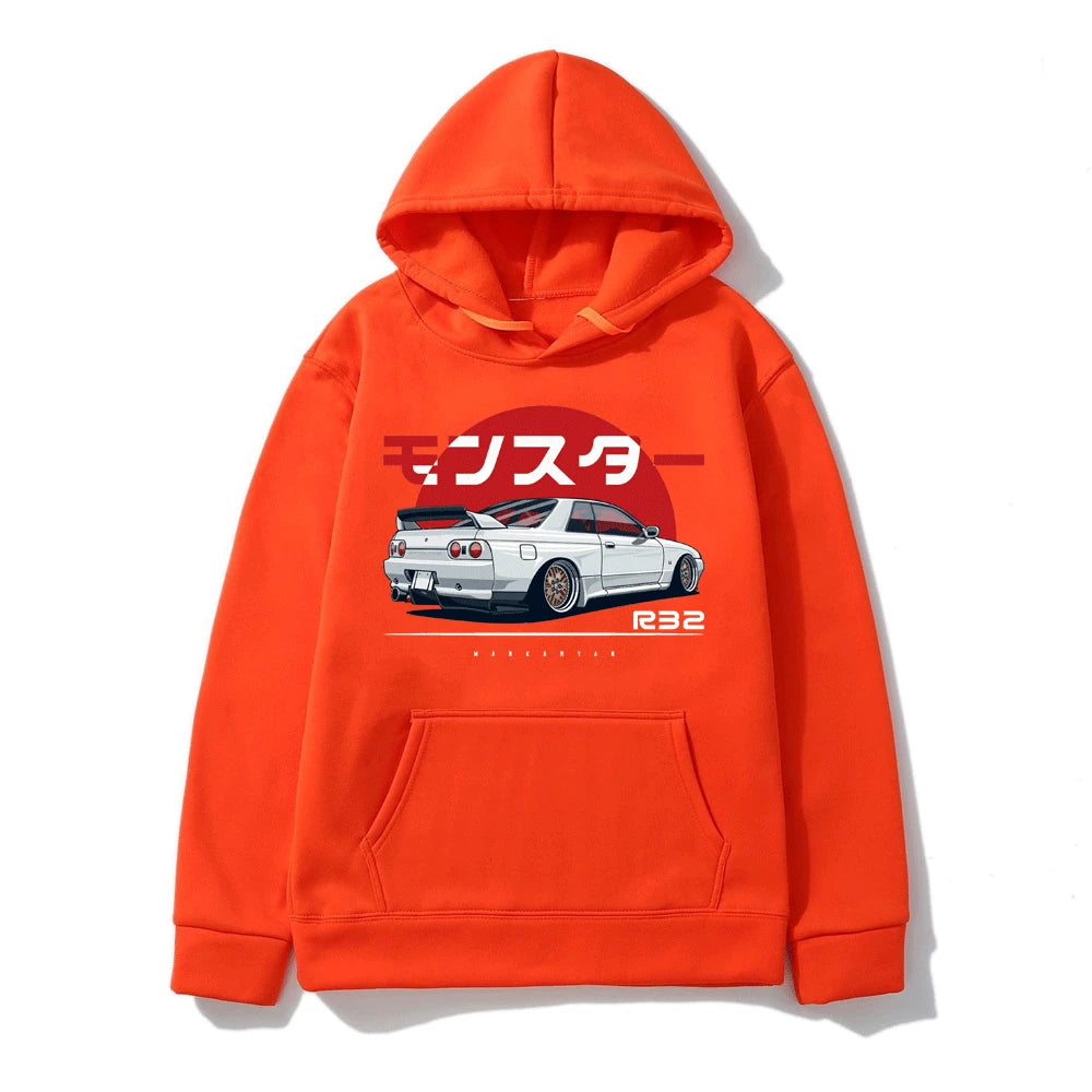 This piece is more than apparel; it’s a statement of passion. With its high-quality print showcasing the iconic R32 GTR against the rising sun, it evokes the essence of the classic drift racing series. Each hoodie is tailored to ensure a perfect blend of cozy warmth and relaxed style, making it ideal for chilly nights out or quiet evenings in. Whether you're out on the town or lounging at home, let the spirit of the streets define your wardrobe. Choose your color, ignite your look, and carry the legacy of Initial D wherever you go.