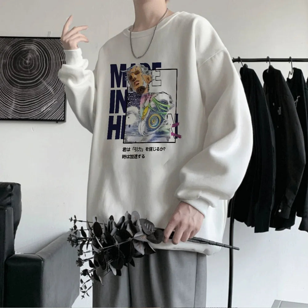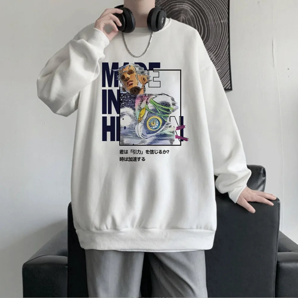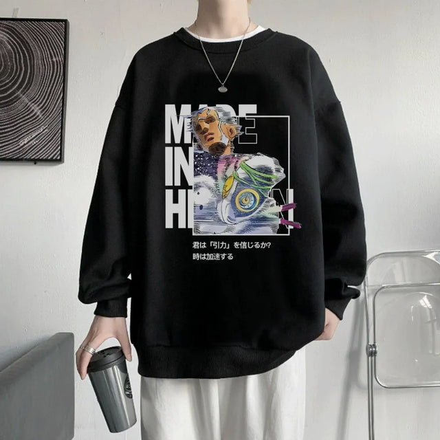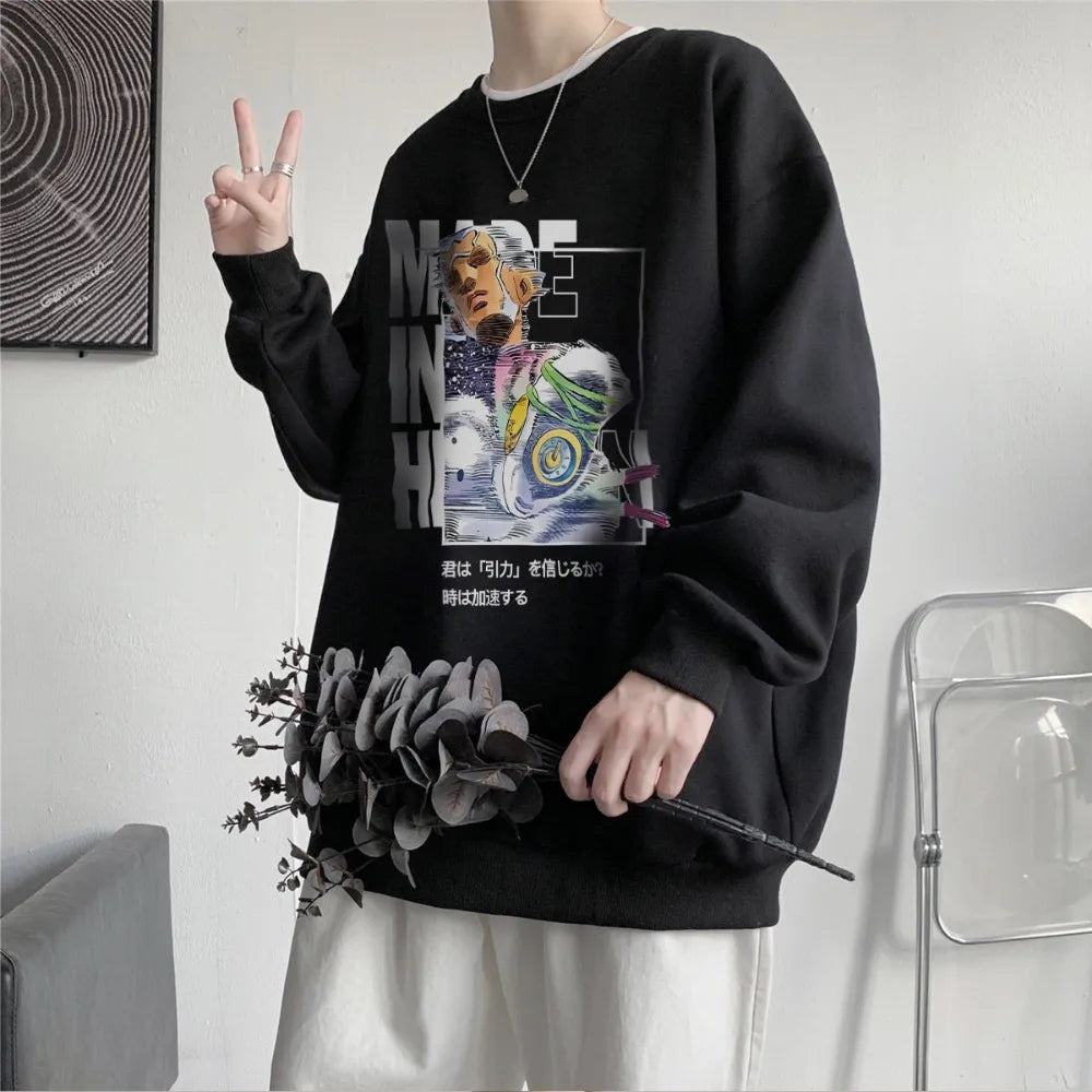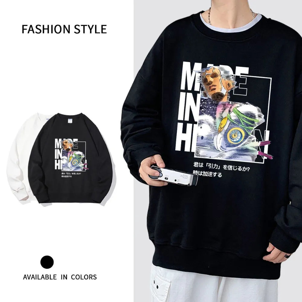 Whether you’re lounging at home or stepping out for a casual meet-up, this sweatshirt ensures you do so in style. The loose fit and O-neck collar enhance comfort, allowing for easy layering over other pieces. Celebrate your fandom and make a bold statement with this exclusive piece, which not only honors the character of Enrico Pucci but also embodies the adventurous spirit of "JoJo’s Bizarre Adventure." Wear it and carry a piece of anime history wherever you go, all while staying cozy and fashionable.