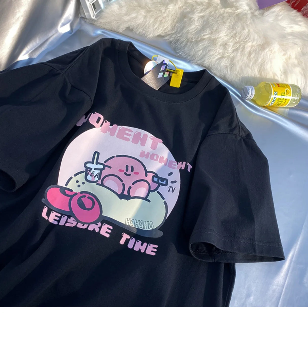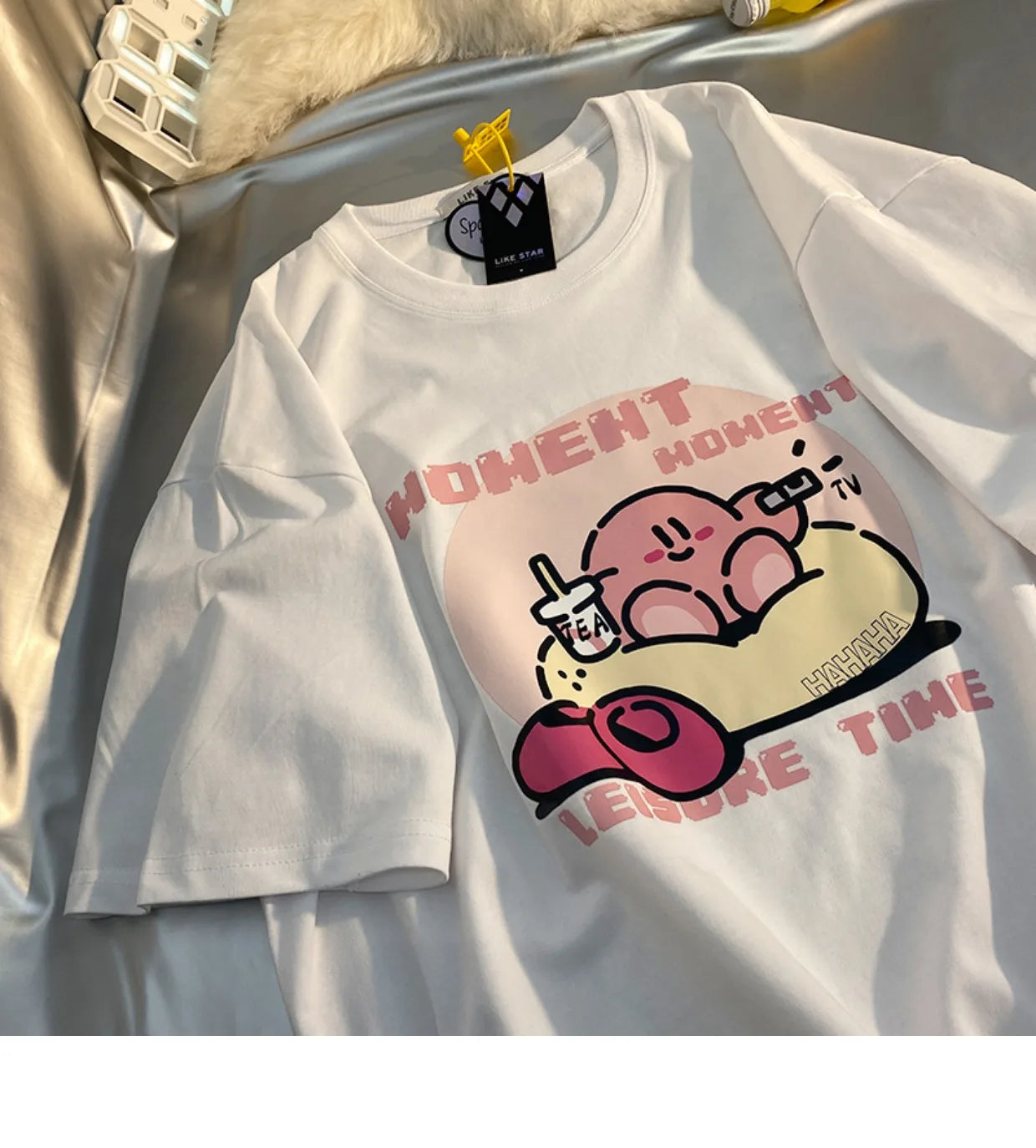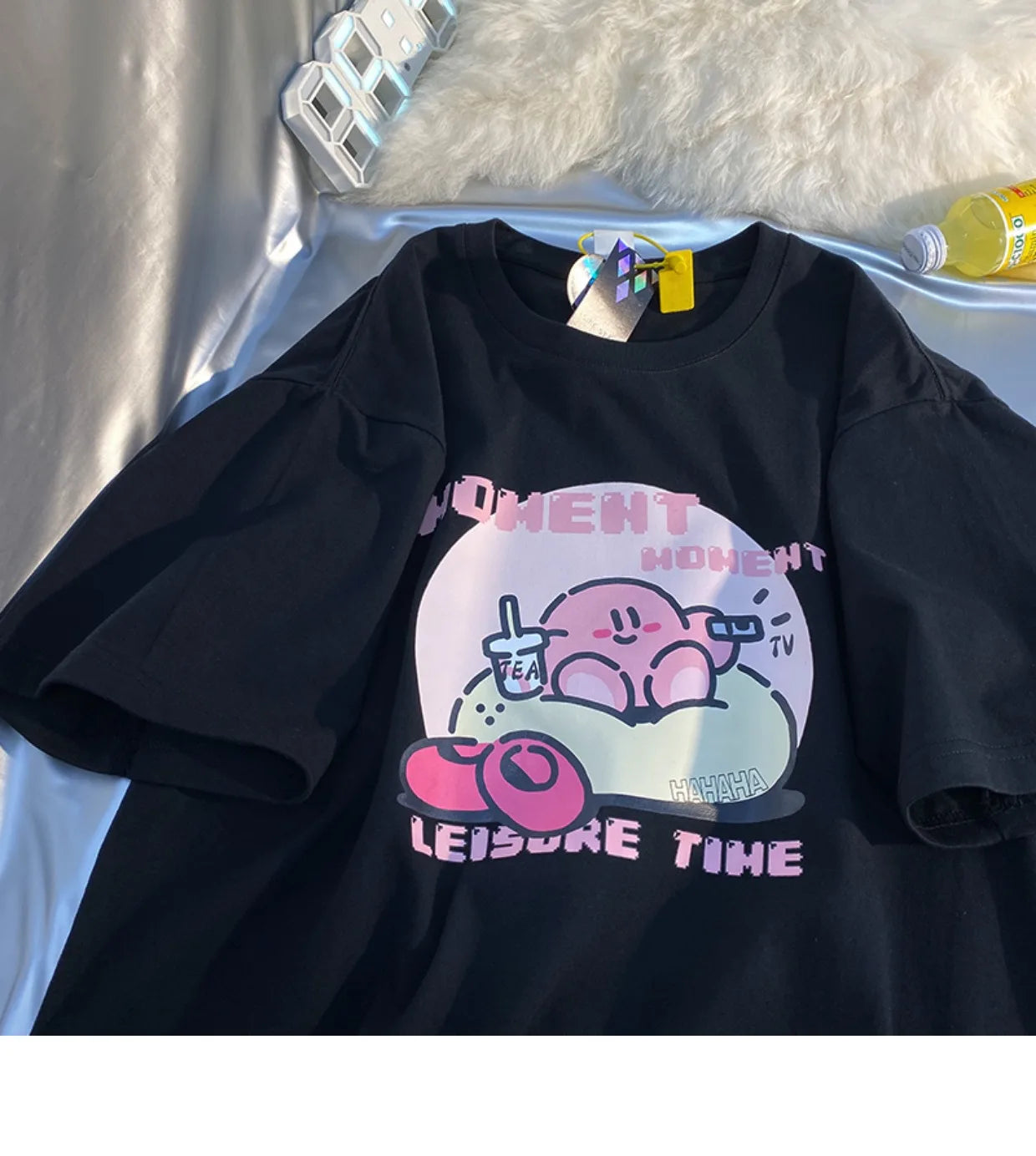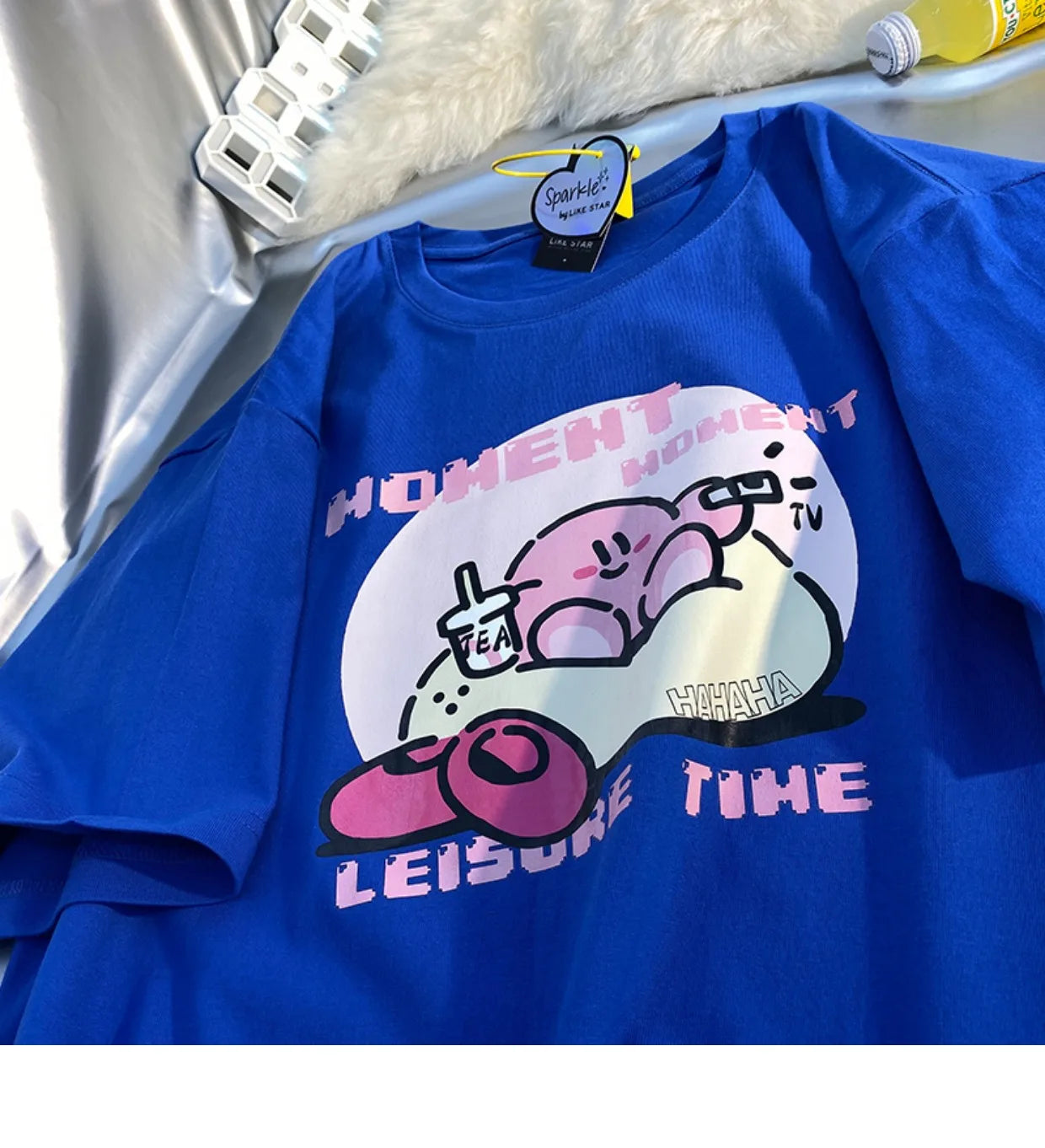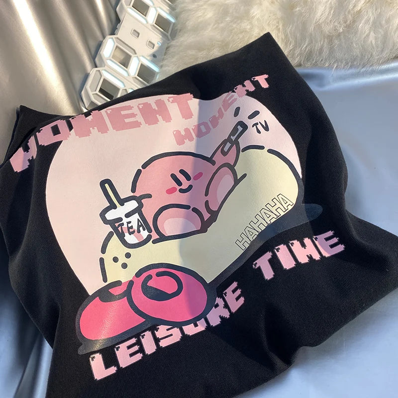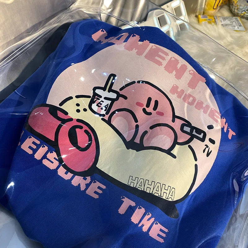 👾💖 The tee's design is centered around Kirby, the iconic character known for his cute appearance and adventures in Dreamland. It's an invitation to wear your fandom with pride, showcasing Kirby's endearing charm in a fashionable and playful way.