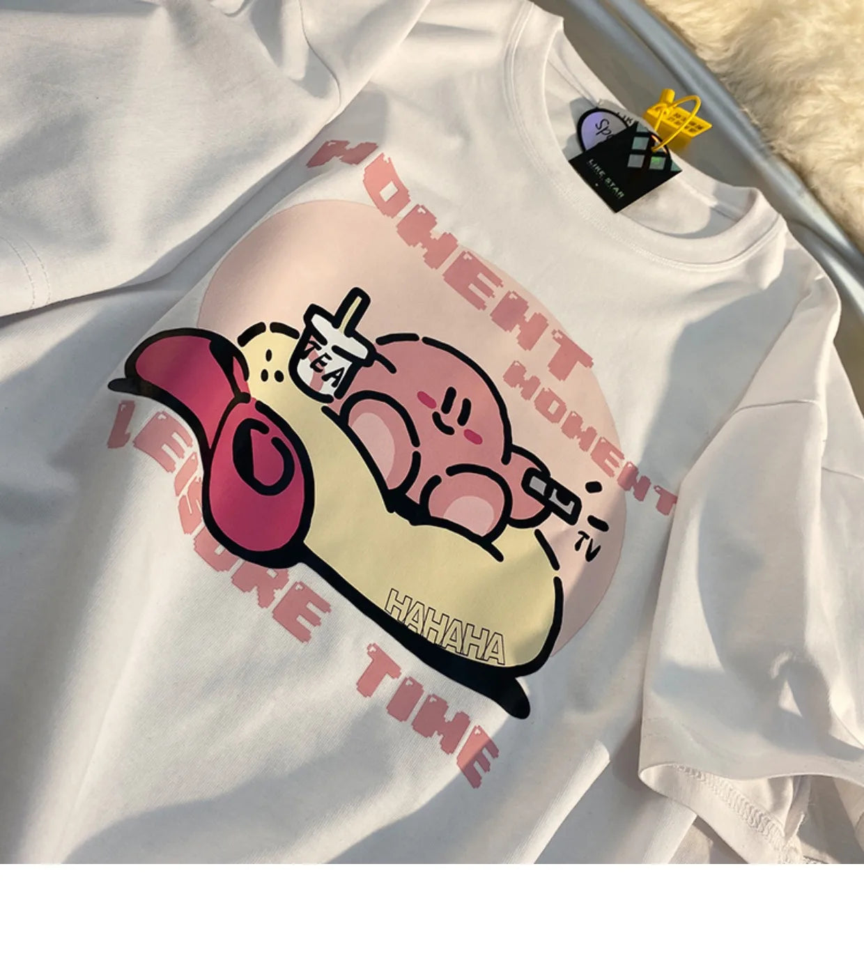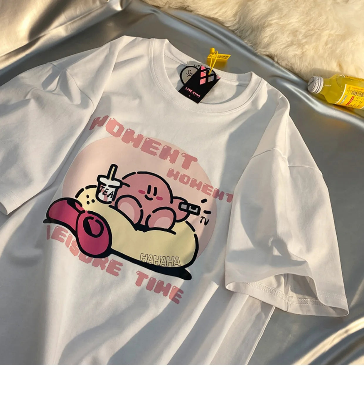 🌈🌟 Crafted from cozy flannel material, this tee is more than just a piece of clothing; it's a soft embrace that combines comfort with the whimsical world of Kirby. Its breathable and gentle fabric ensures you stay comfortable and stylish, whether you're on a casual outing or enjoying a relaxing day at home.