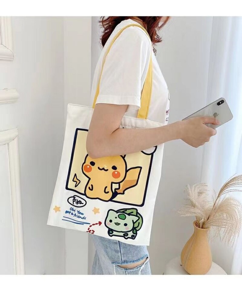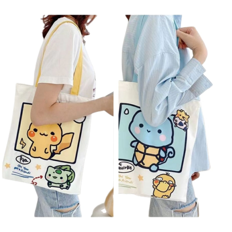 Carry your essentials in style with this adorable Pokemon canvas tote bag! Featuring cute and colorful designs of your favorite Pokemon, this lightweight yet durable bag is perfect for shopping, school, or casual outings.