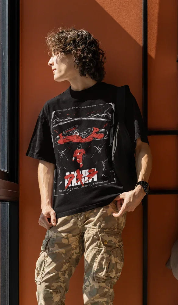 - Iconic Akira Design: Step into the world of Neo Tokyo with this striking tee, capturing the legendary essence of the groundbreaking anime "Akira."