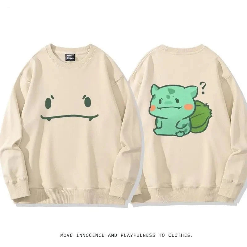 Capture the spirit of Pokemon with the Poke-Comfort Khaki Crew Neck Sweatshirt Series, a collection that's as cozy as it is playful. This exclusive series showcases three beloved Pokemon characters – the serene Bulbasaur, the fiery Charmander, and the shape-shifting Ditto – each bringing a unique Pokemon charm to your wardrobe. Set against a versatile khaki background, the graphics pop with personality and nostalgia. These sweatshirts are the epitome of high-quality casual wear, made with soft, resilient fabric designed to keep you warm on a breezy day out or during a relaxed evening in.