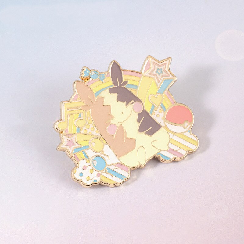 Add a touch of Pokemon magic to your outfit with our stunning Pokemon Rainbow Series Metal Badges. Featuring beloved characters like Pikachu, Scorbunny, Eevee, Ponyta, and Morpeko, these badges are a creative and stylish way to decorate your clothes and accessories.