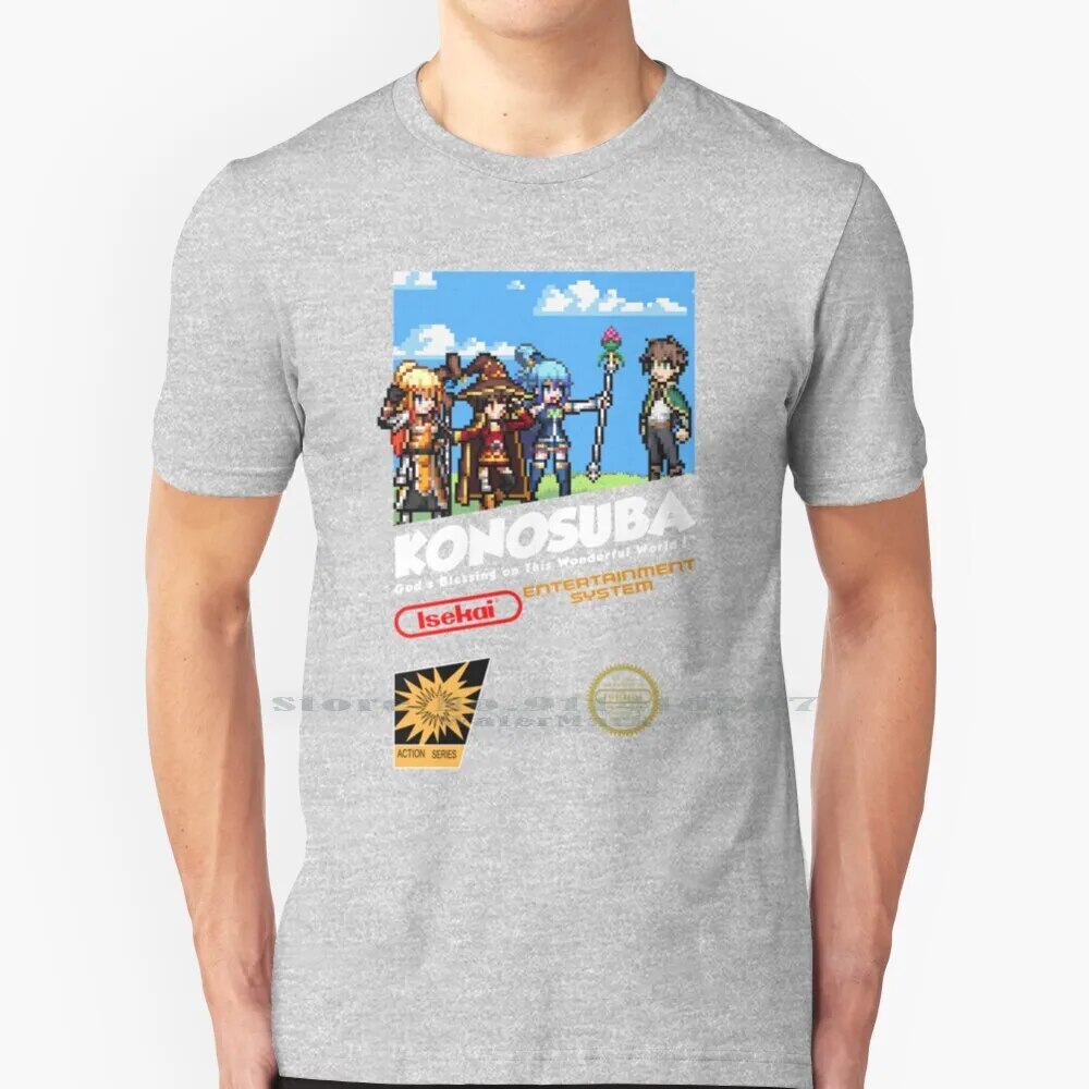 Get ready for an isekai adventure with this Konosuba Retro T-Shirt! Featuring your favorite chaotic party—Kazuma, Aqua, Megumin, and Darkness—this tee combines classic retro gaming vibes with the hilarious world of Konosuba.