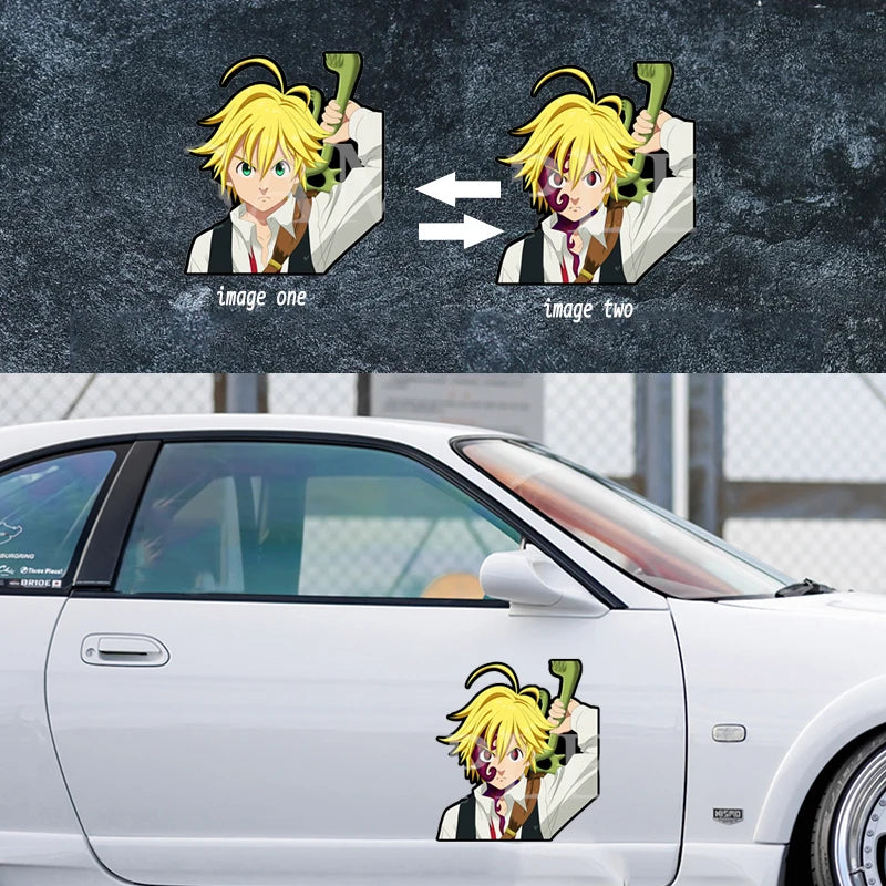 🔥💥 Each sticker showcases Meliodas in an impressive 3D motion effect, creating an illusion of movement that brings his character to life in a remarkable way. Sized between 5 to 7 inches, these stickers are perfect for adding a significant yet tasteful anime flair to your belongings, from laptops and skateboards to car windows.