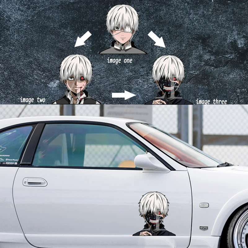 🖤🌃 Crafted with a 3D motion design, this sticker vividly captures Kaneki's transformation, creating an illusion of depth and movement that brings his character to life on any surface, all without the need for special glasses. Sized between 5 to 7 inches, it's perfect for personalizing laptops, skateboards, or car windows, adding a touch of Tokyo Ghoul's thrilling aesthetic.