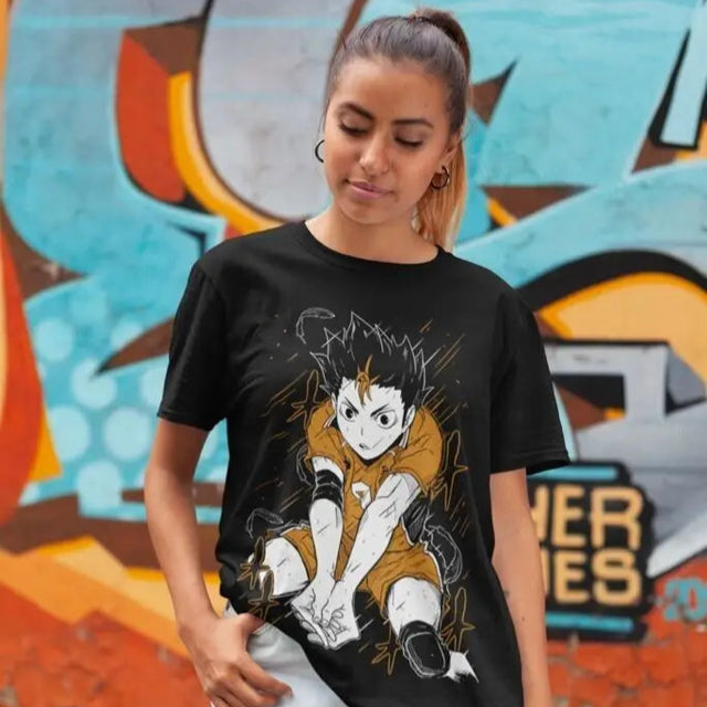 Get fired up with the Yu Nishinoya Haikyuu Tee! Featuring Karasuno’s guardian deity in action, this tee captures the energy and determination of your favorite libero in one bold design.
